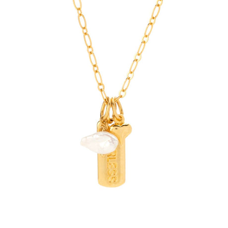 MAYAMAR 24K Gold Plated "Fearless" Bar & Cultured Pearl Necklace