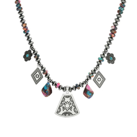 Southwest Elements "Statements" Purple Dahlia Kingman Turquoise Charm Necklace
