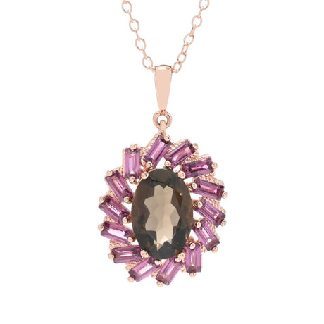 Rose Gold Plated Choice of Gemstone Oval & Baguette Pendant w/ Chain