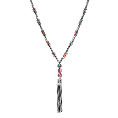 Southwest Elements Orange Dahlia Kingman Turquoise & Navajo Pearl Necklace