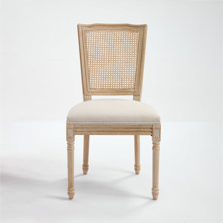 French Style Solid Wood Frame Linen Back Dining Chair Set of 2
