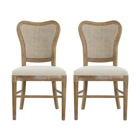 French Country Dining Chairs Set of 2 Upholstered With Natural Rattan Back