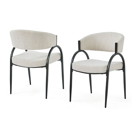 Indoor Dining Chair Set of 2 in Creamy Oatmeal Upholstered Fabric