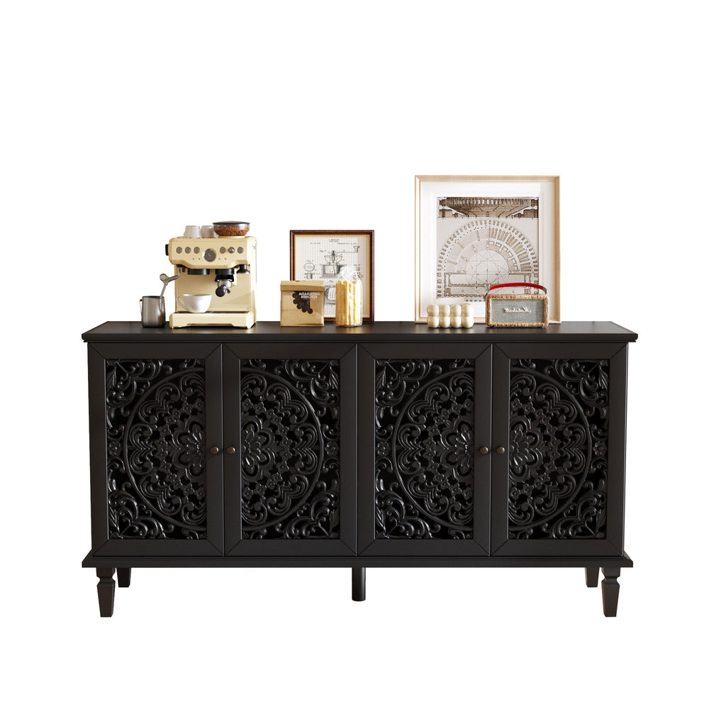 This 60-inch antique buffet cabinet is a versatile piece designed for living rooms, dining rooms, or entryways. It combines functional storage with elegant vintage style, serving as a TV stand or sideboard.