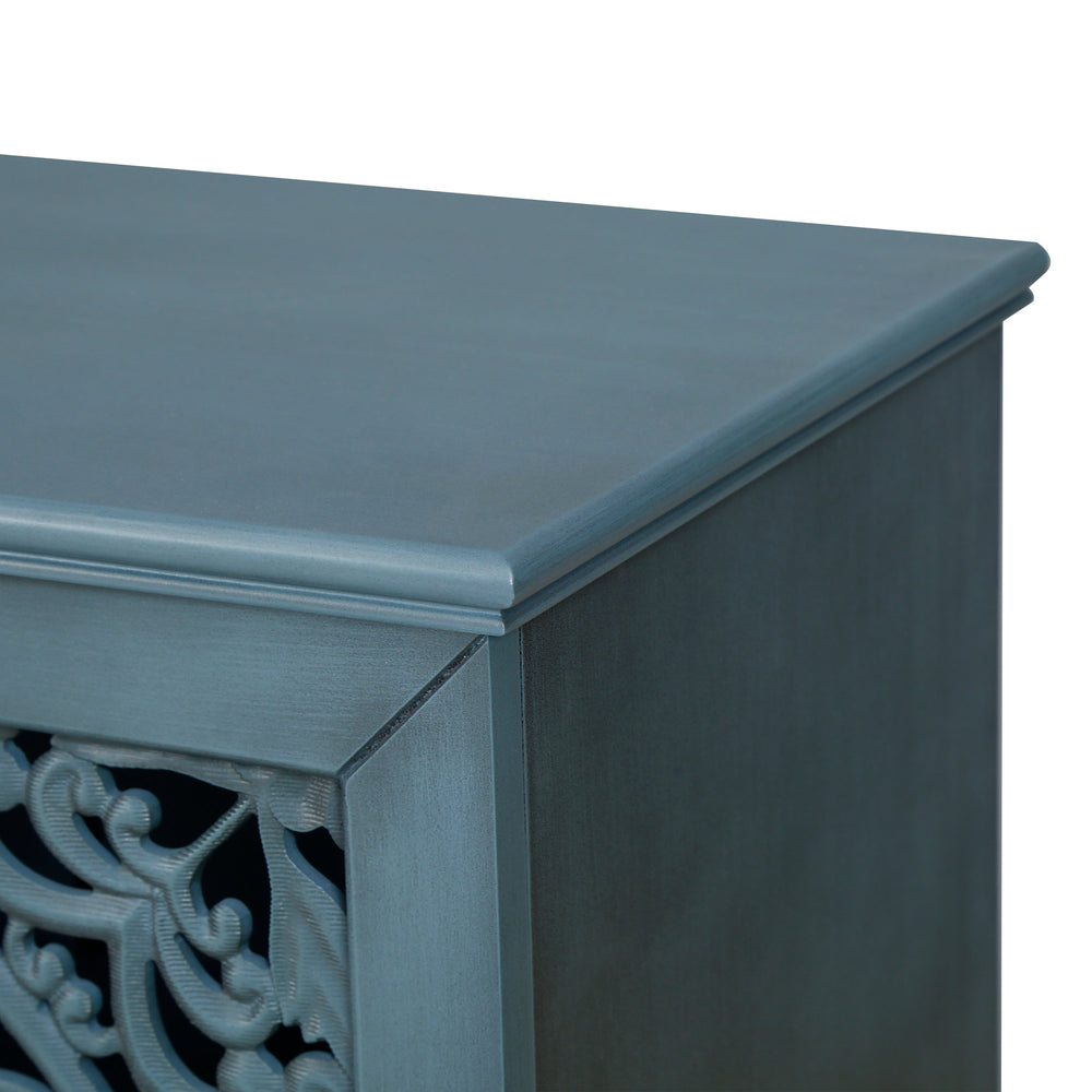 - Constructed from solid wood and MDF with a durable antique blue glaze finish
