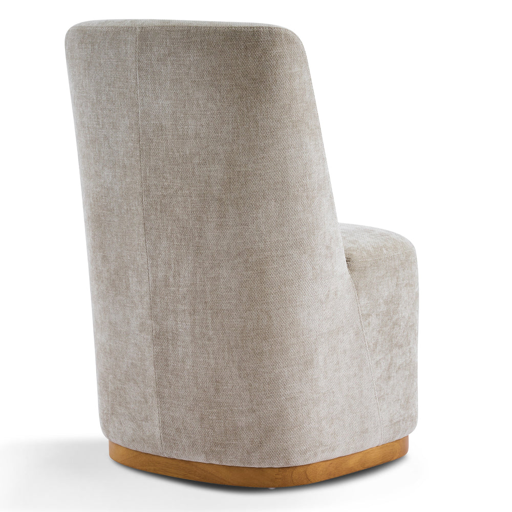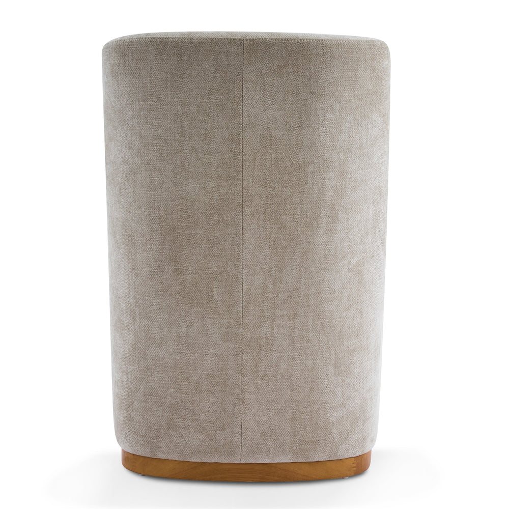 - Material: Plush chenille fabric upholstery in creamy oatmeal with a rubber wood, plywood, and pine frame