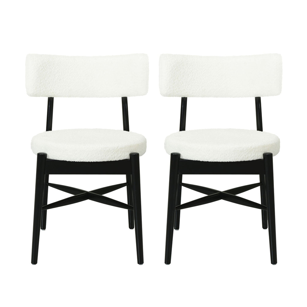 - Mid Century Modern Dining Chairs with Unique Open Back and Upholstered Curved Backrest - Black / Beige: 20.0"W x 20.0"D x 32.0"H - 11.9 lb