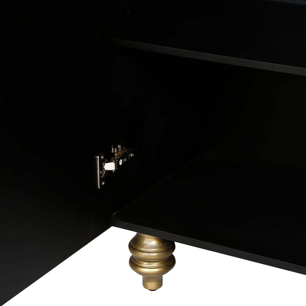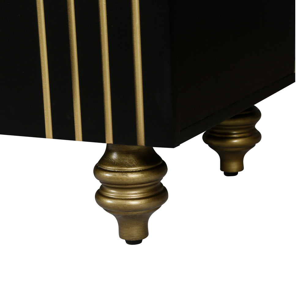 This modern fluted sideboard buffet is a functional and stylish addition to your living room or primary living space. Featuring a sleek black MDF construction with elegant gold accents, it offers both storage and aesthetic appeal.