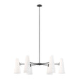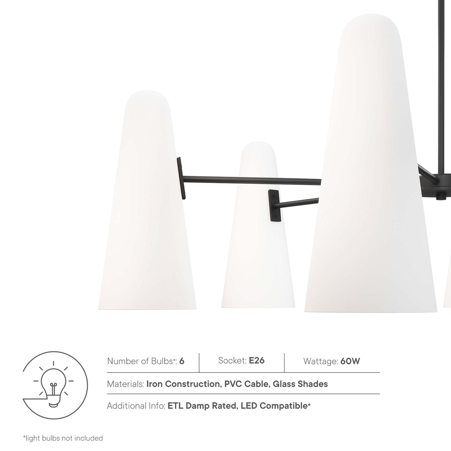 The Beacon 6-Light Chandelier updates a living space, bedroom, kitchen, dining room, bathroom, or office with minimalist sleekness that makes a modern statement. Compatible with sloped ceilings, Beacon has a ceiling canopy with a swivel adaptor and features a five piece, height-adjustable hanging rod to suit a range of ceiling heights. Offering a warm glow through six slim glass cone shades, this light fixture requires six E26 bulbs 60W max or LED equivalent (not included). ETL Listed for Damp Locations. Luminaires that are �Suitable for Damp Locations� are approved for areas that are regularly exposed to moisture and condensation. Professional installation required.