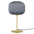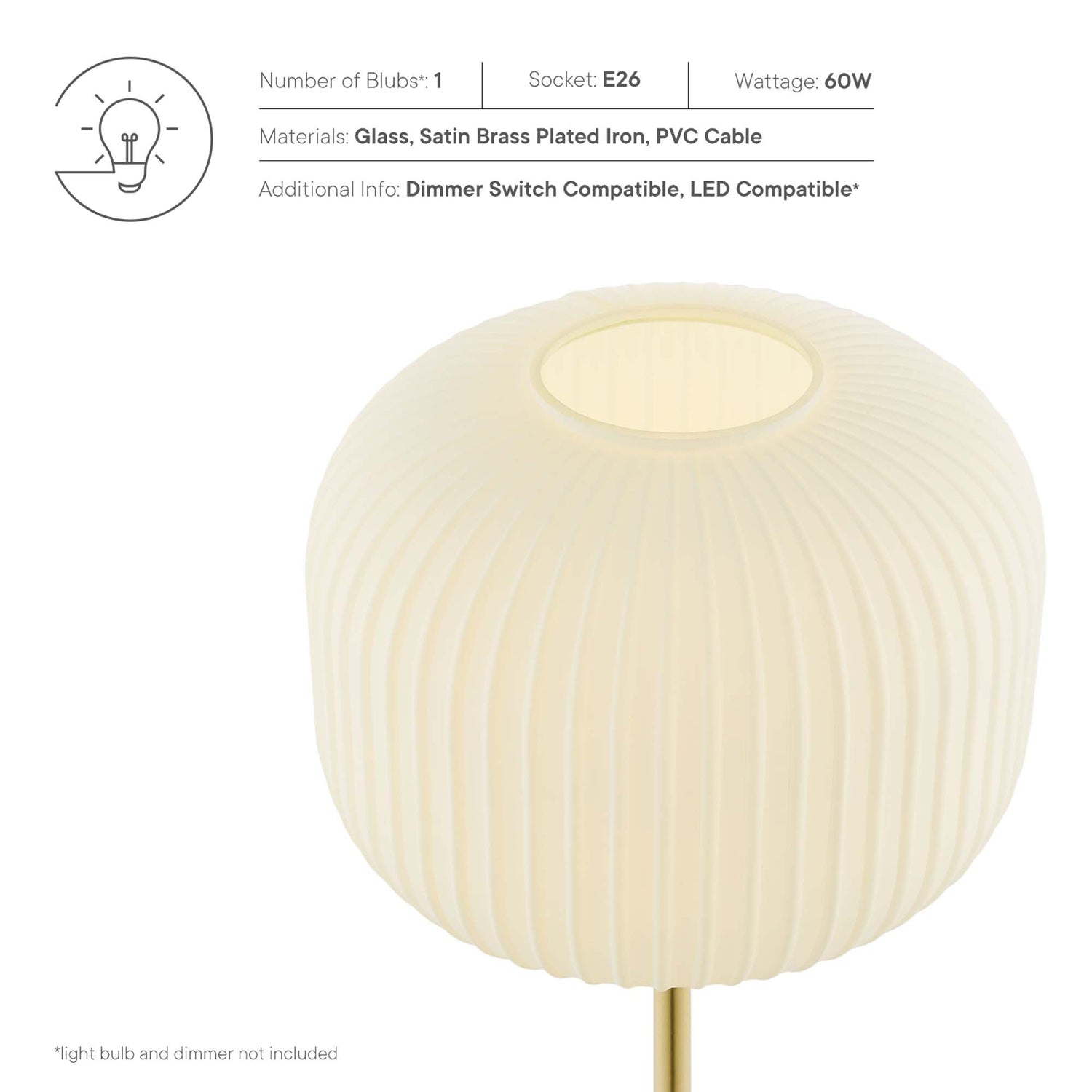 Introduce lighting ingenuity and nuanced retro style into your home decor. The iconic shape of the Reprise Glass Sphere Table Lamp brings structure, texture, and a warm transparent glow to your bedroom, living room, entryway, or office. The opaque glass shade is softly textured with embossed horizontal lines creating a commanding lamp for the living room in mid-century modern, contemporary, or eclectic settings. With rich satin brass accents, this side table lamp combines elegance and functionality. Reprise is a dimmable bedside lamp (dimmer switch not included), requiring 1 E26 60W max bulb or LED equivalent (not included). Conveniant access on/off switch with a black power cord. Assembly required. Clean with a soft, damp cloth.
