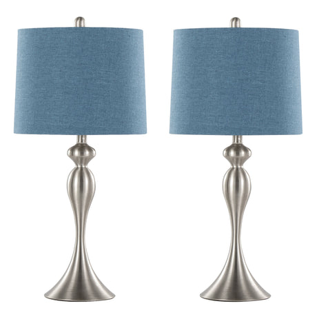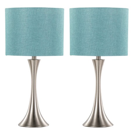 Lenuxe 24" Contemporary Metal Table Lamp Set in Brushed Nickel with Turquoise Shade - Set of 2