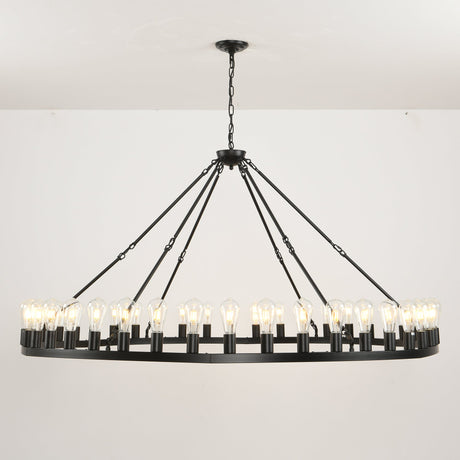 64 Inch Matte Black Wagon Wheel Chandelier with 30 Lights