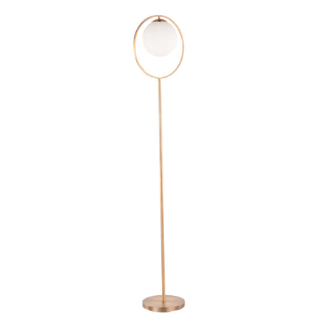 Moon Contemporary Floor Lamp in Gold Metal and Frosted Glass