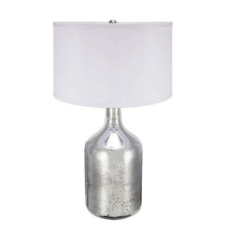 Silver Round Table Lamp with White Fabric Shade