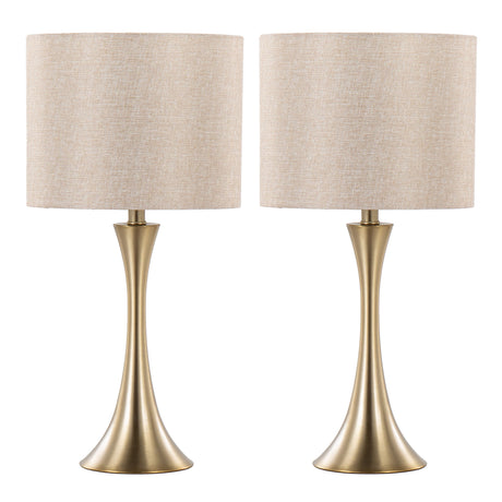 Lenuxe 24" Contemporary Metal Table Lamps in Gold with Linen Shades - Set of 2
