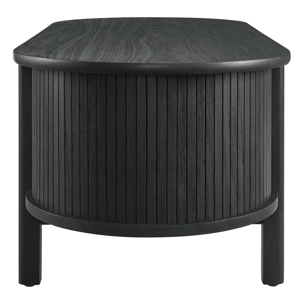 Revolutionize your home or apartment decor with the Cadence Coffee Table. This mid-century modern piece is perfect as a central table in your living room, offering both style and functionality. The unique design features curved edges and fluted details, adding a stylish flair to any space. Crafted from high-quality materials such as rubberwood, particleboard, and MDF, the Cadence coffee table is designed for longevity and showcases a beautiful wood grain laminate, enhancing the organic aesthetics of your living or lounge area. This oval coffee table is perfect for various uses, comfortably supporting books, decorative items, or beverages. It includes an open shelf underneath for displaying or organizing home decor, making it an excellent open storage coffee table as well as a modern accent table. Adjustable non-marking foot glides provide added stability. With an oval shape and chic silhouette, the Cadence fluted coffee table is a great living room essential that complements a variety of decors. Assembly required. Tabletop Weight Capacity: 169 lbs.