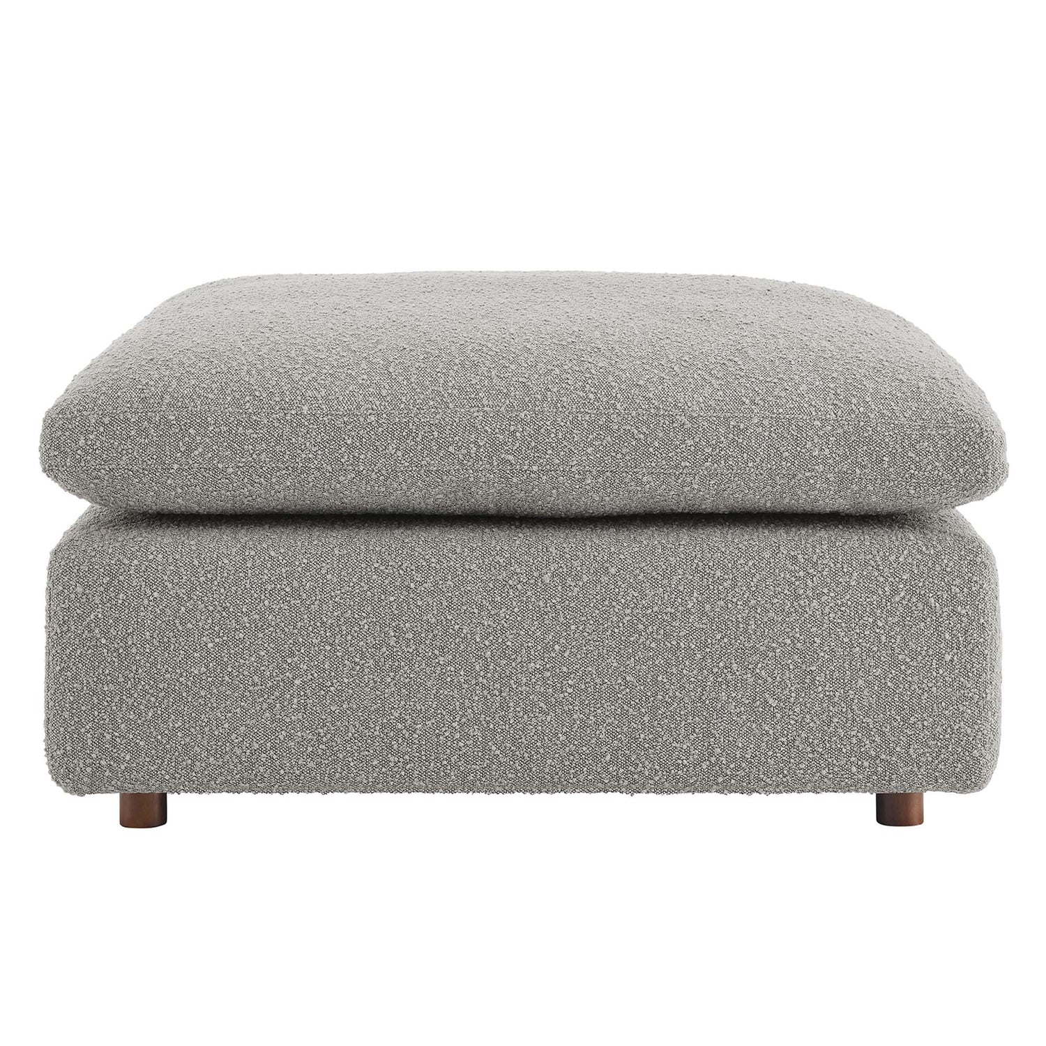 A haven for cozy relaxation, Commix features plush comfort and a clean-lined design. The spacious profile makes an attractive statement in the modern home. Covered in a boucle fabric with a charming nubby texture, this upholstered ottoman comes with a solid wood construction and foam padded and duck down cushions for a luxurious sink-in feel. Commix features overstuffed down feather cushions that offer a feeling of relaxation and calming comfort while lounging, making it the perfect addition to the living room, family room, or game room. Made for sprawling out or curling up, Commix beckons you and guests to sit and stay a while. Includes plastic foot glides. Ottoman Weight Capacity: 331 lbs.