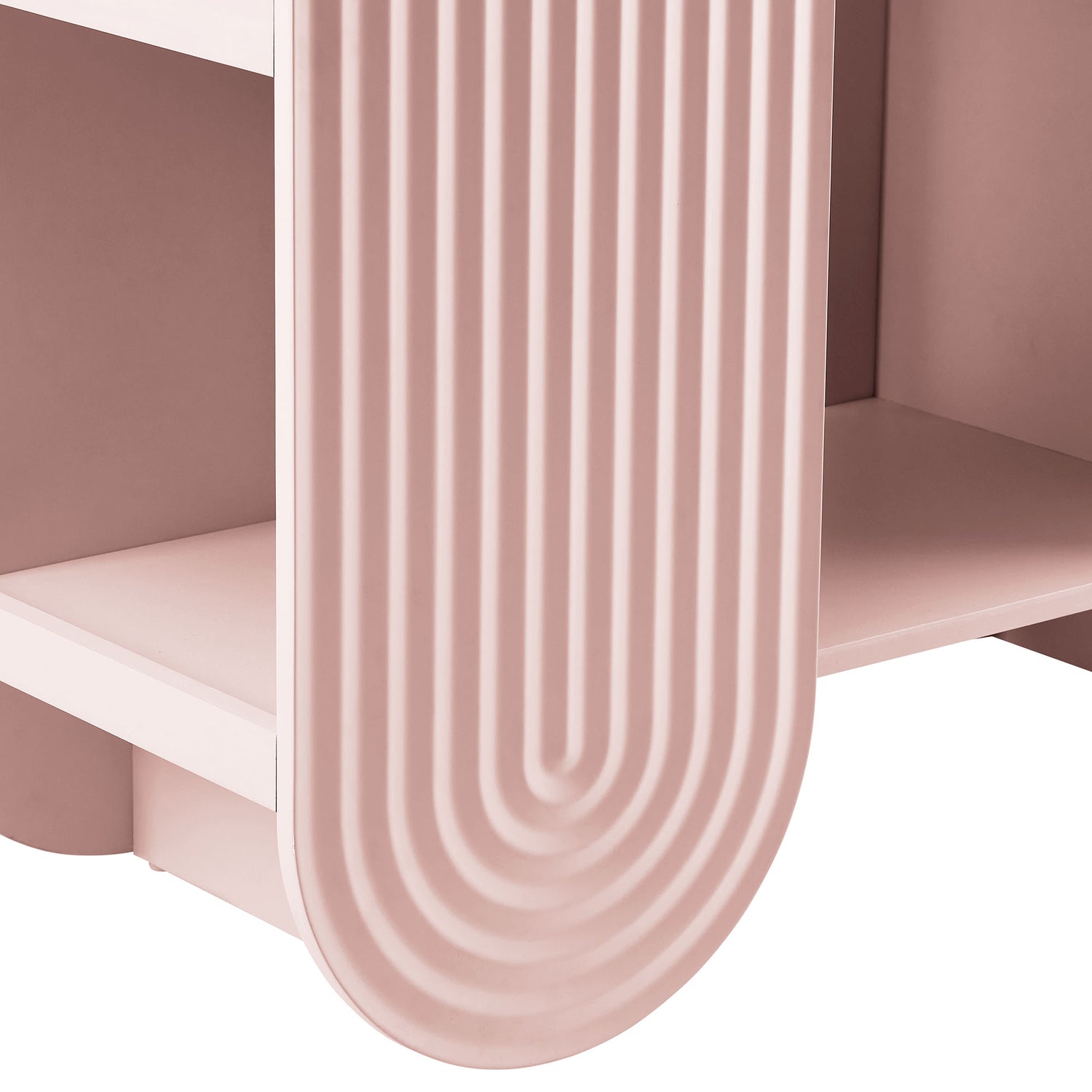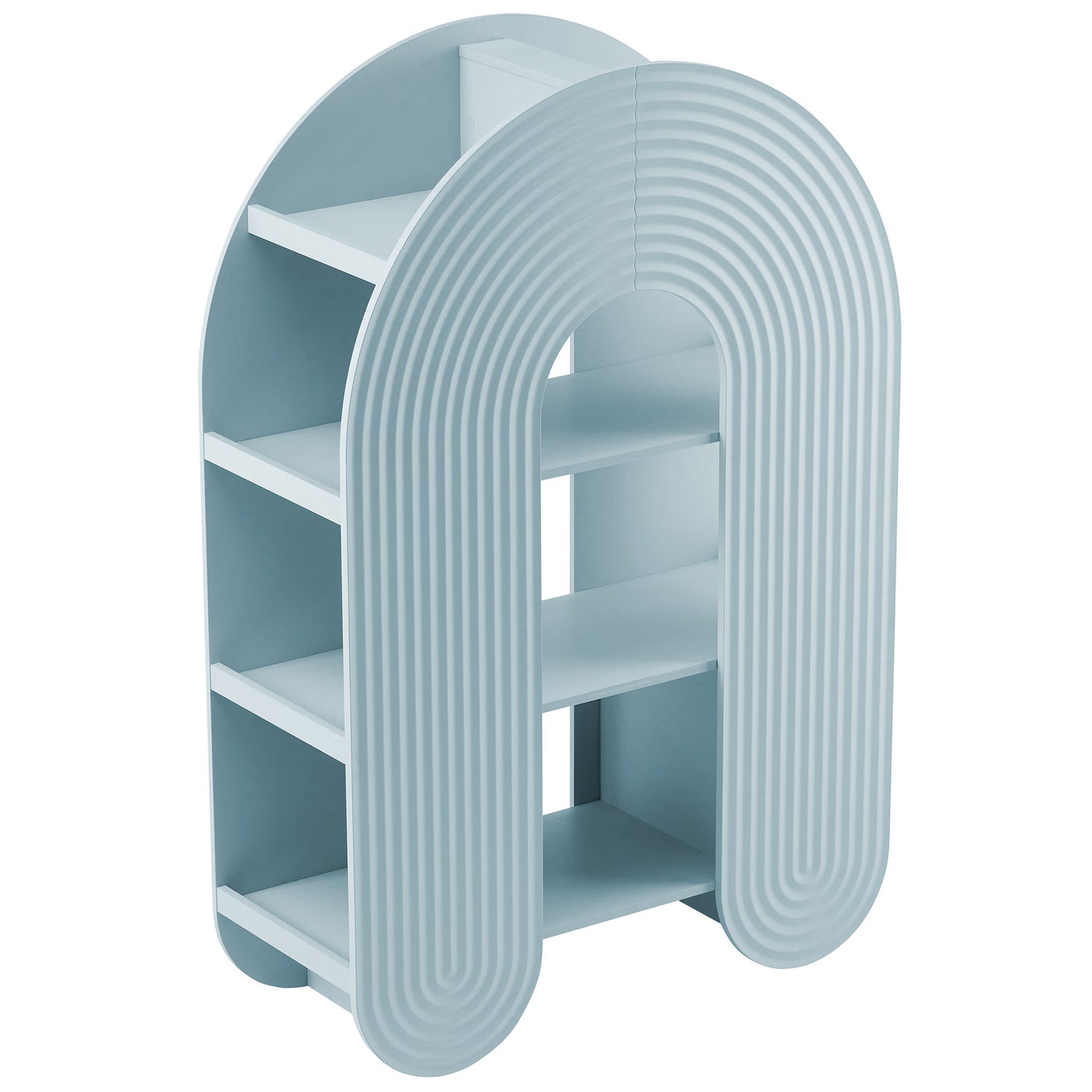 Let imagination take shape with the Daydream Bookcase, a sculptural display piece that blends whimsy, utility, and modern charm. At 58 inches tall, this arched ripple bookshelf offers a refreshing twist on traditional bookcases with its curved, oversized silhouette and dimensional detailing. More than just a storage cabinet, Daydream doubles as a playful focal point in a creative nook or cozy reading corner. With open shelving on both sides and through the center arch, this display case provides ample room for books, toys, decorative objects, or art supplies. Its rounded frame and ripple-textured front evoke a sense of motion and creativity. Designed with versatility in mind, this unique bookshelf complements both minimalist and maximalist interiors. Non-marking nylon floor glides protect your surfaces while keeping the arched bookcase stable. Whether placed in a playful family space or fun lounge area, Daydream transforms everyday storage into something magical. Assembly required.