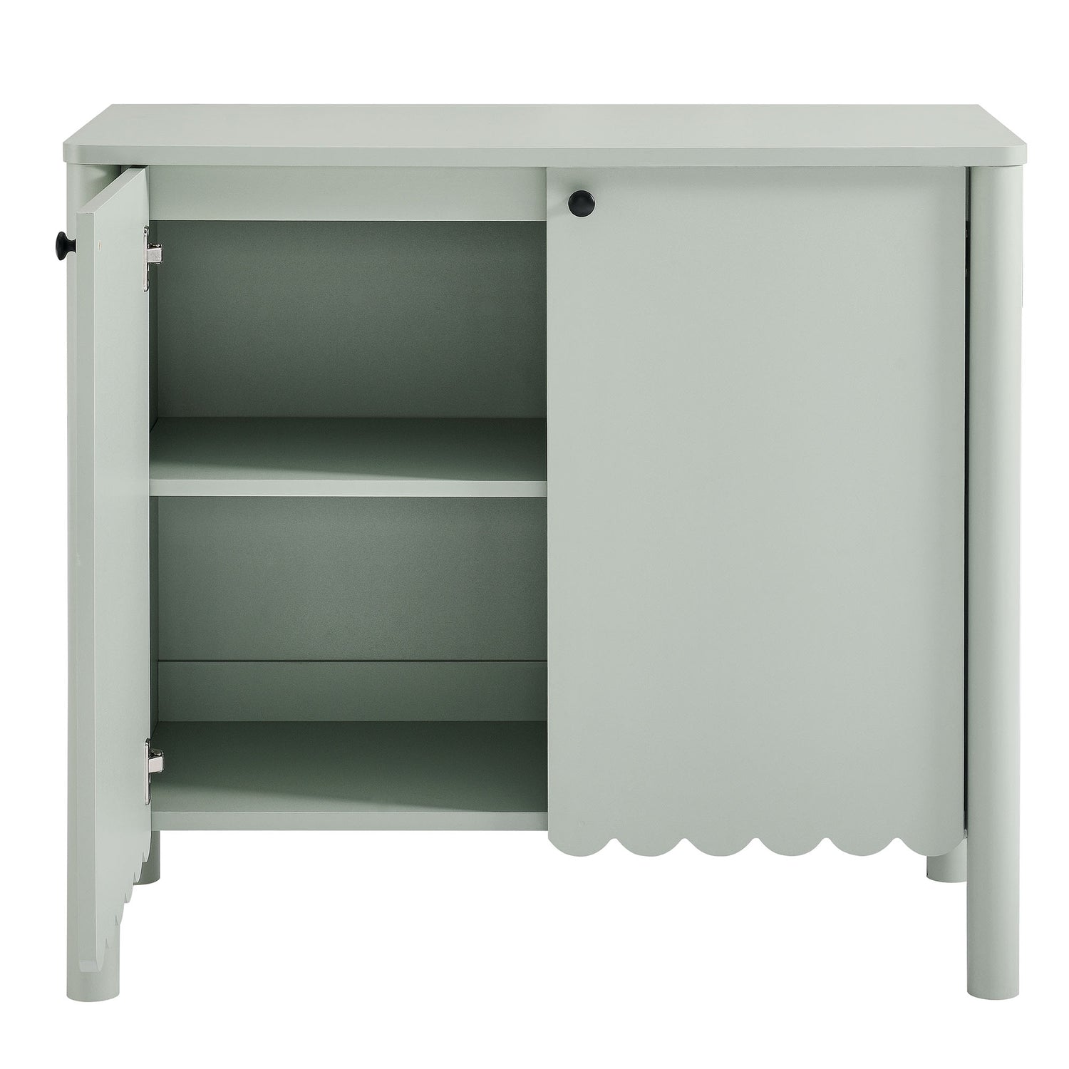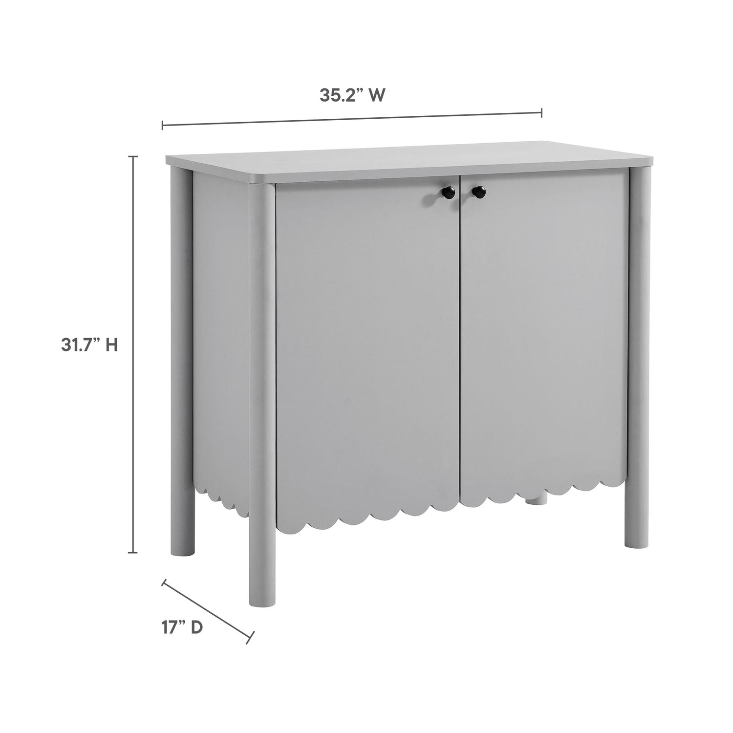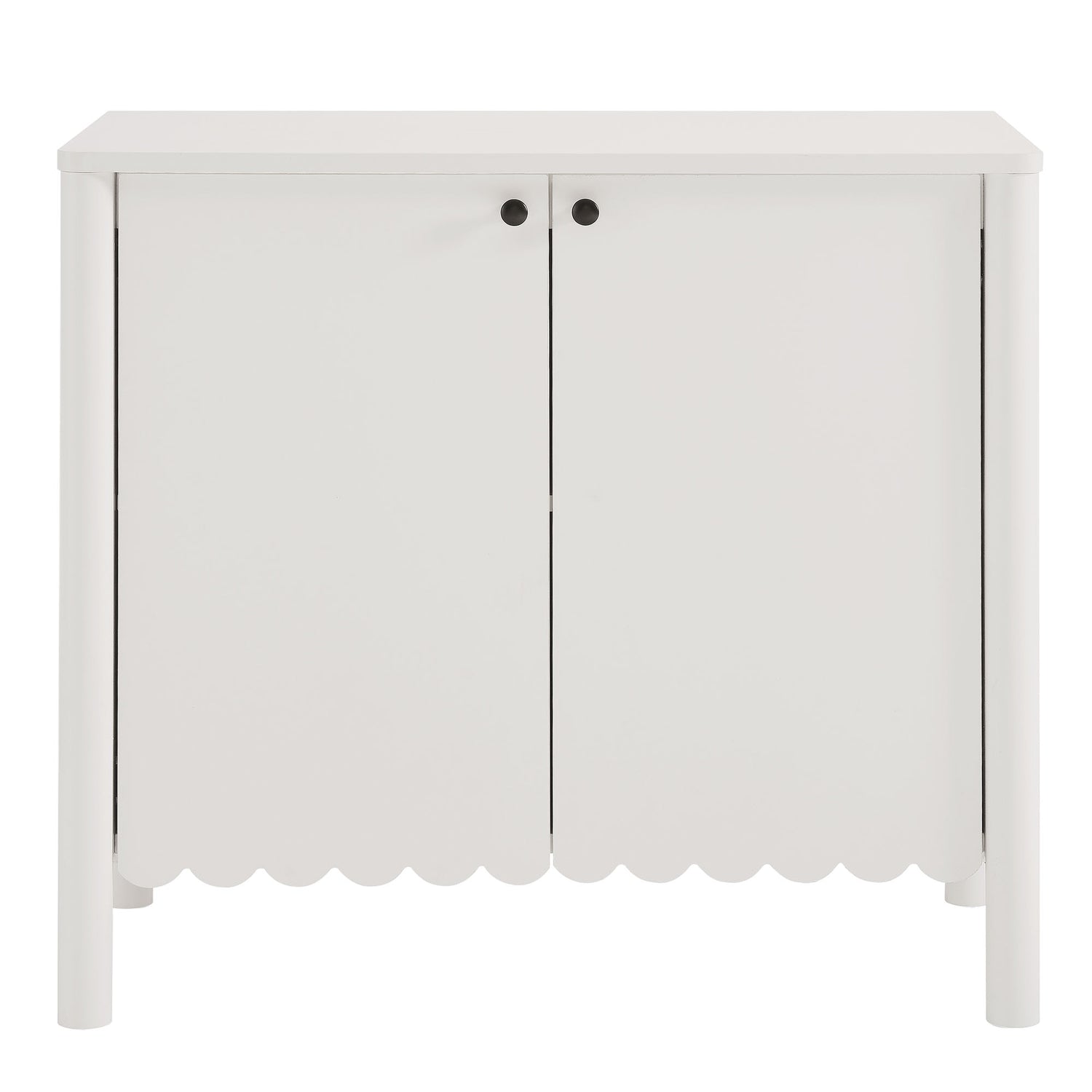 An elegant blend of subtle curves and practical storage, the Emmeline 2-Door Wavy Sideboard Cabinet adds a touch of artistic flair to any room. Its standout feature�a scalloped bottom edge�creates a soft, flowing silhouette that enhances the modern simplicity of the design. Behind its two soft-close doors, an adjustable shelf provides flexible storage space, ideal for organizing dining essentials, decor, or media accessories. Crafted with a sturdy frame and finished in smooth laminate, this farmhouse side cabinet is as functional as it is stylish. The round door knobs and non-marking glides add to its refined appearance, while ensuring your floors remain protected. Whether serving as a modern sideboard, accent cabinet, or entryway console with storage, Emmeline brings a contemporary, polished look to hallways, dining rooms, or living spaces. Assembly required.