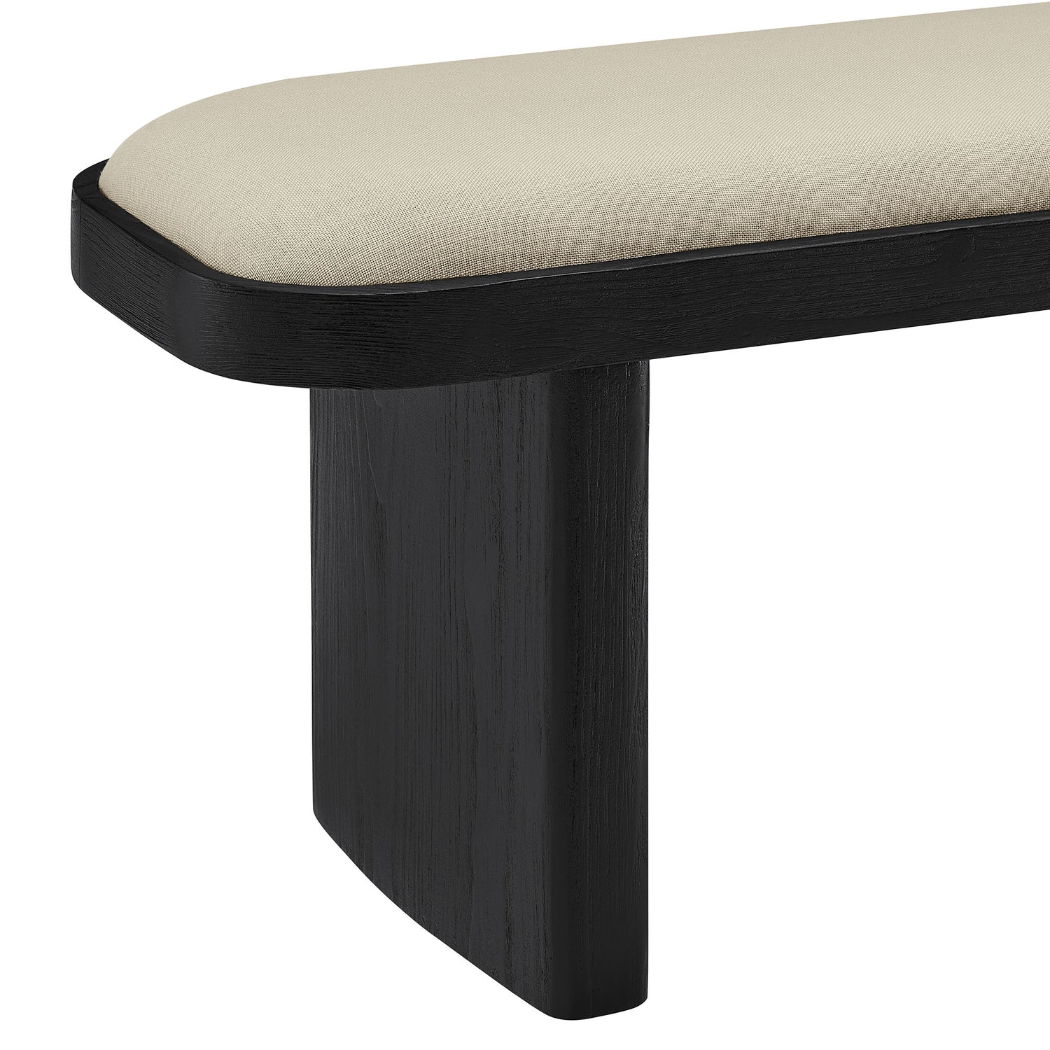 The Iver Oval Wood Fabric Bench brings a modern touch to any space with its sleek design and functional versatility. Crafted with a kiln-dried solid pine wood frame and upholstered in a soft cotton-blend fabric, this 43-inch bench offers dense foam padding for added comfort. Its oval-shaped seat and uniquely angled legs create a striking silhouette that complements contemporary and minimalist decor. Adjustable floor protectors provide stability and protect your floors, making it a practical choice for busy areas. Perfect for entryways, bedrooms, or living rooms, this mudroom bench combines clean lines with practical design. Assembly required. Weight Capacity: 200 lbs.