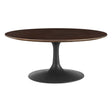 Let modern inspiration flow while gathered around the Lippa 36" Round Coffee Table. Perfect for hosting a morning cup of coffee or entertaining family and friends, this pedestal table features a spacious surface. Its round tabletop is crafted with durable MDF and wood grain veneer with a beveled edge for a contemporary yet timeless design. Embodying an iconic mid-century silhouette, this pedestal coffee table floats on a sleek tapered metal pedestal base with a chip-resistant powder-coated finish. Includes non-marking felt pad to protect flooring. Assembly required.