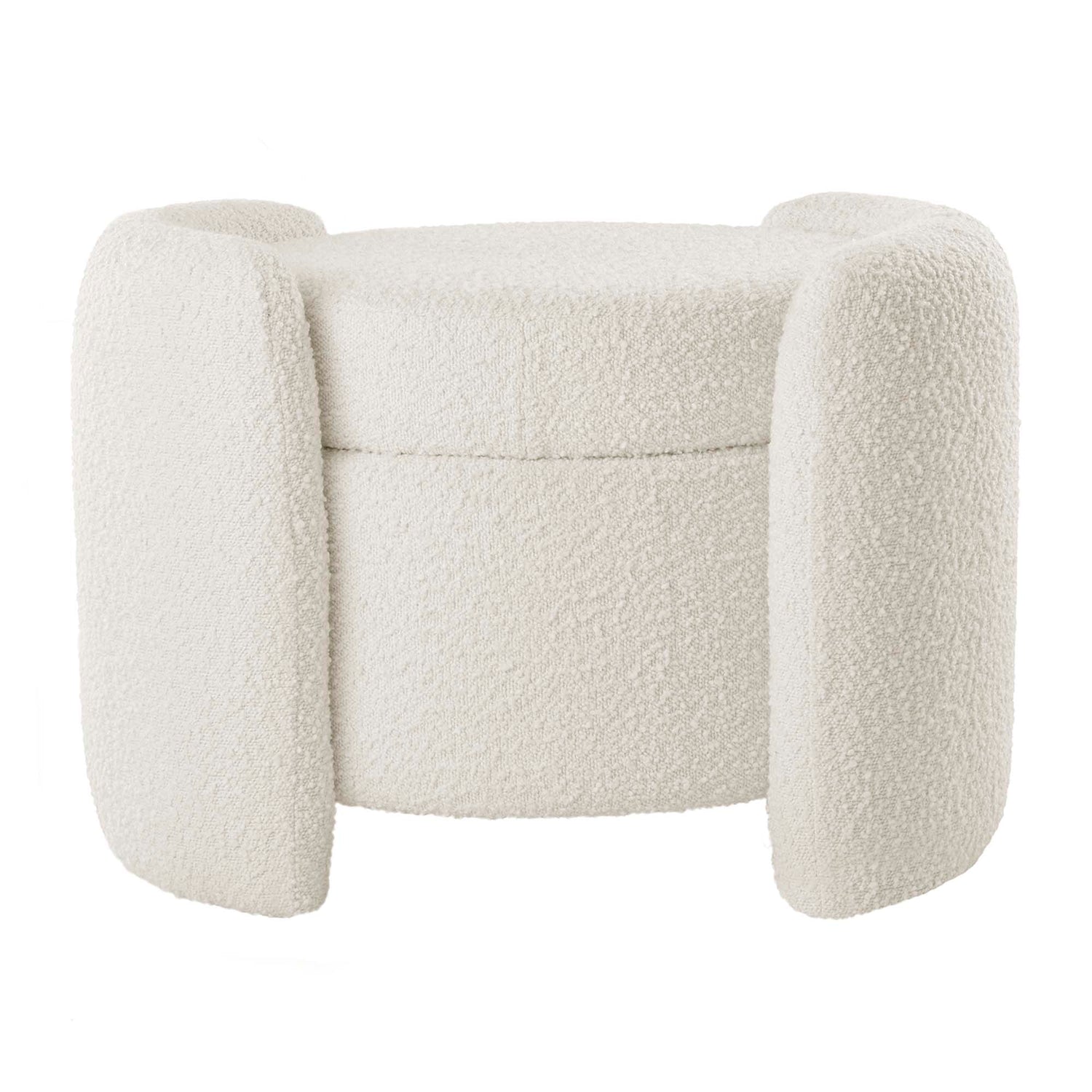 Relax amidst trending style and modern comfort with the Nebula Boucle Upholstered Accent Ottoman. Bringing appreciated texture to your living space, entryway, bedroom, or other seating area, this accent ottoman is upholstered in a beautiful boucle fabric made with looped yarns to create its charming nubby texture. Dense foam padding offers a premium seating experience and is perfect for kicking your feet up and relaxing. This storage ottoman has a removable seat to reveal the spacious storage area perfect for hiding TV remotes, an extra blanket, magazines, books, and more. Weight Capacity: 275 lbs.