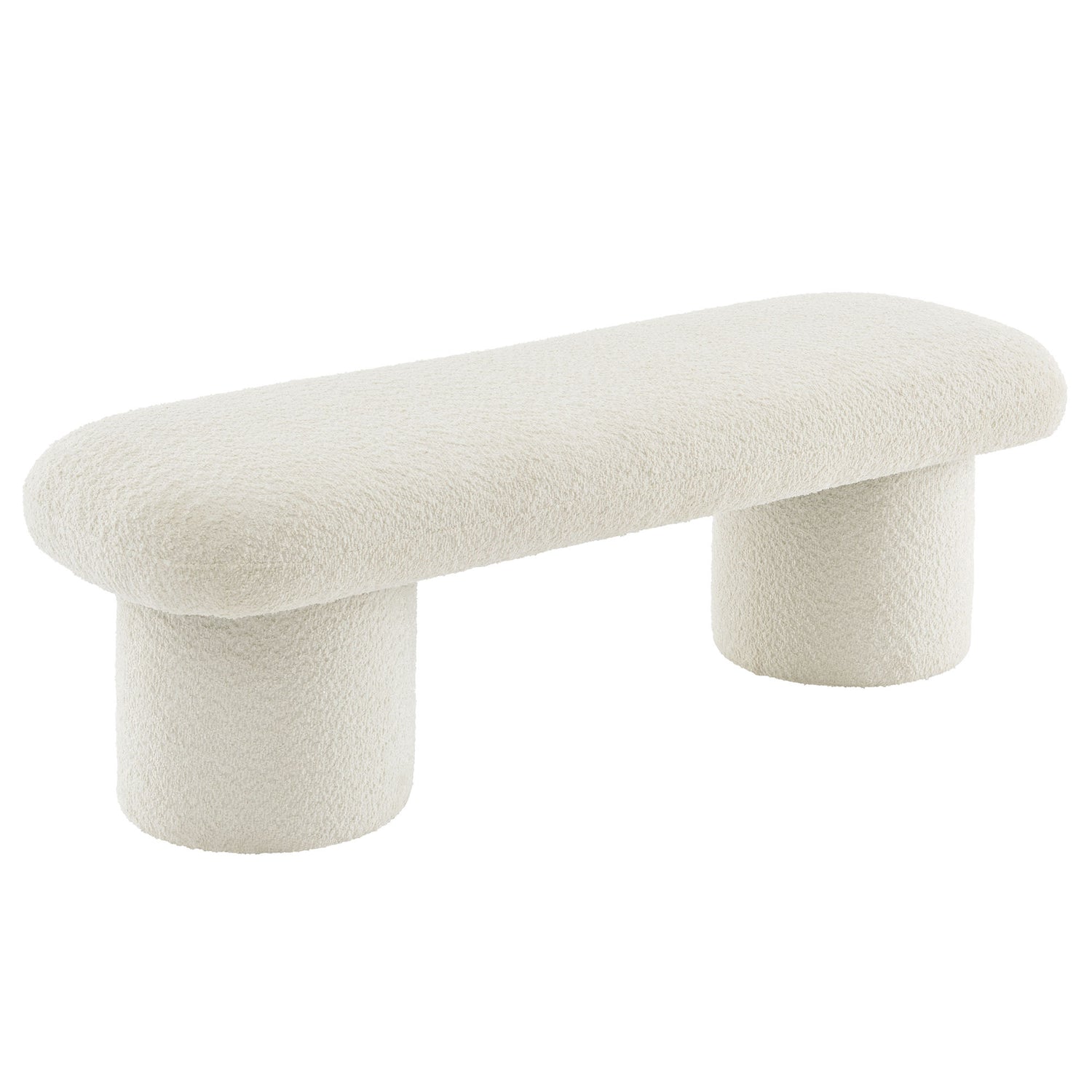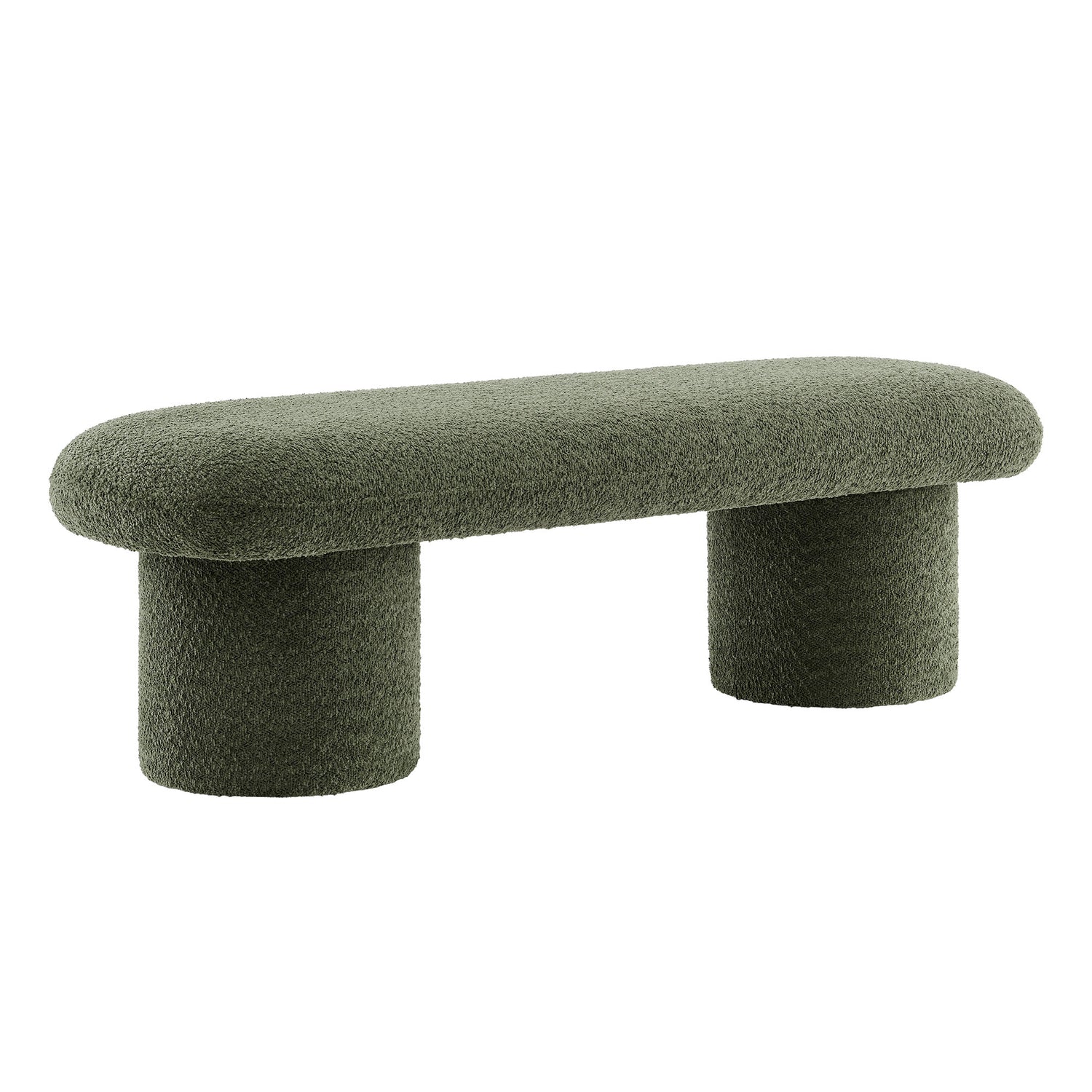Cozy and chic, the Orla Upholstered Bench adds the perfect finishing touch to any space. Fully wrapped in luxurious, soft chenille fabric, this bench sofa offers a soft yet durable seating experience, perfect for everyday use. The plush seat, padded with dense foam, subtly overhangs its round, wide cylindrical legs, which not only provide strong support but also give the modern bench an eye-catching aesthetic. No matter where you place it, Orla looks stunning�whether as an end of bed ottoman, a modern entryway bench, or as additional seating in the living room. It also works perfectly as window seating, providing a spacious, comfortable spot to relax and take in the view. Equipped with non-marking floor glides, the Orla Bedroom Bench keeps your floors protected while making it easy to move from one room to another. Fully assembled and ready to use, this fabric ottoman bench brings a soft, modern touch to any decor. Weight Capacity: 220 lbs.