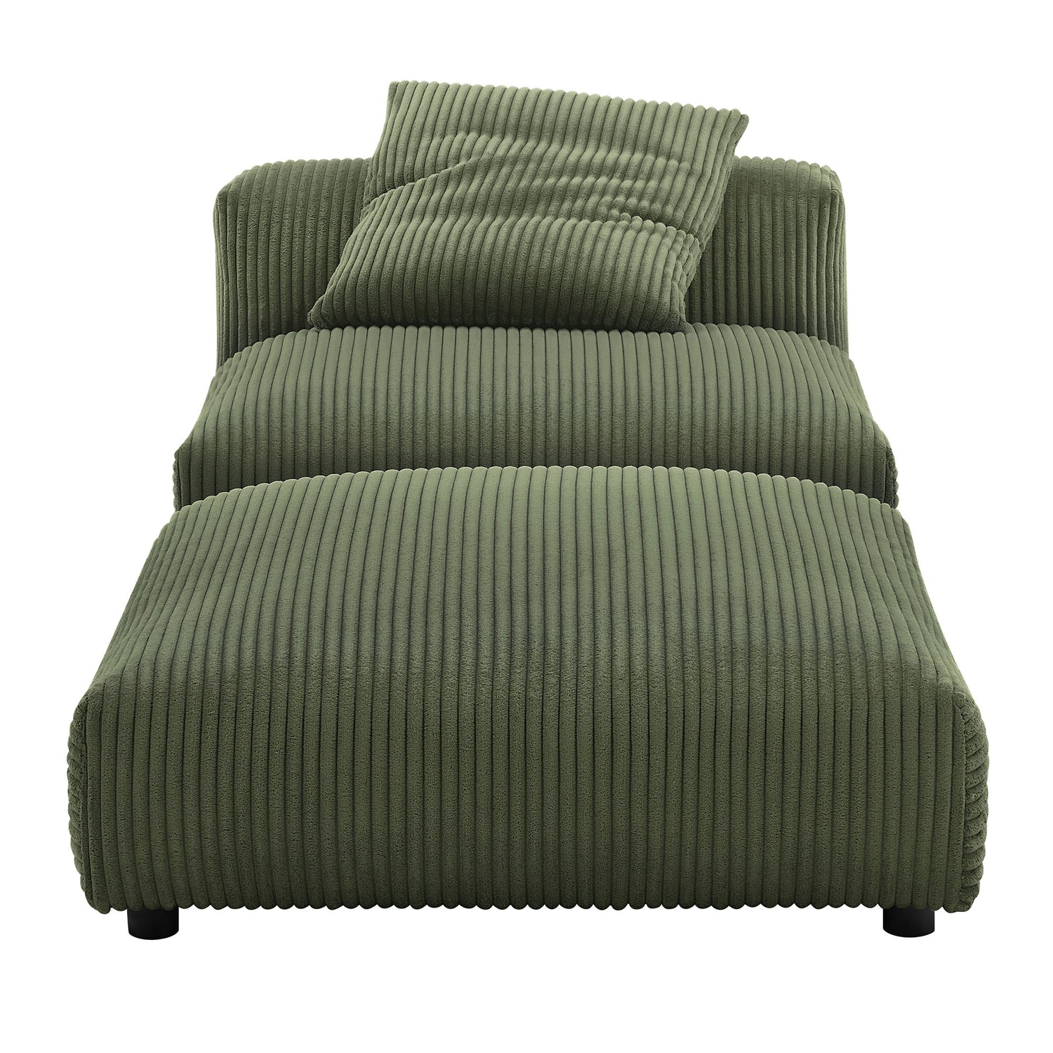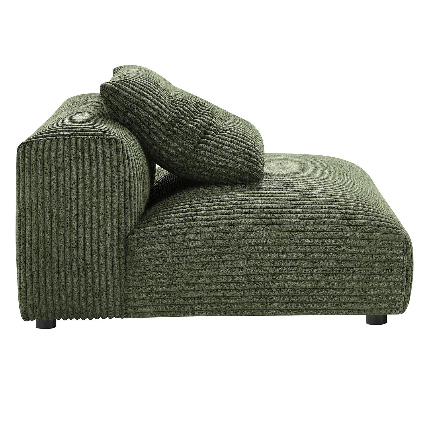 Revel in ultimate comfort and modern style with the Solace Modular Corduroy Armless Chair and Ottoman Set. This oversized corduroy armless chair with a matching ottoman is perfect for any living room, offering endless flexibility. Its modular furniture design allows you to change the arrangement to suit the needs of the moment or expand your seating by adding more pieces in the future. Featuring a sturdy frame, dense foam padding, and a sinuous spring support system, the Solace Armless Chair and Ottoman grants a premium seating experience. The comfy corduroy upholstery adds a cozy, casual vibe, making this upholstered large chair with ottoman a perfect addition to any living space or lounge area. Equipped with non-marking plastic glides and a complementing accent pillow, this oversized accent chair and ottoman set is both stylish and practical. With no assembly required, you can enjoy immediate relaxation with this 2 piece armless chair with ottoman. Chair Weight Capacity: 800 lbs., Ottoman Weight Capacity: 500 lbs.