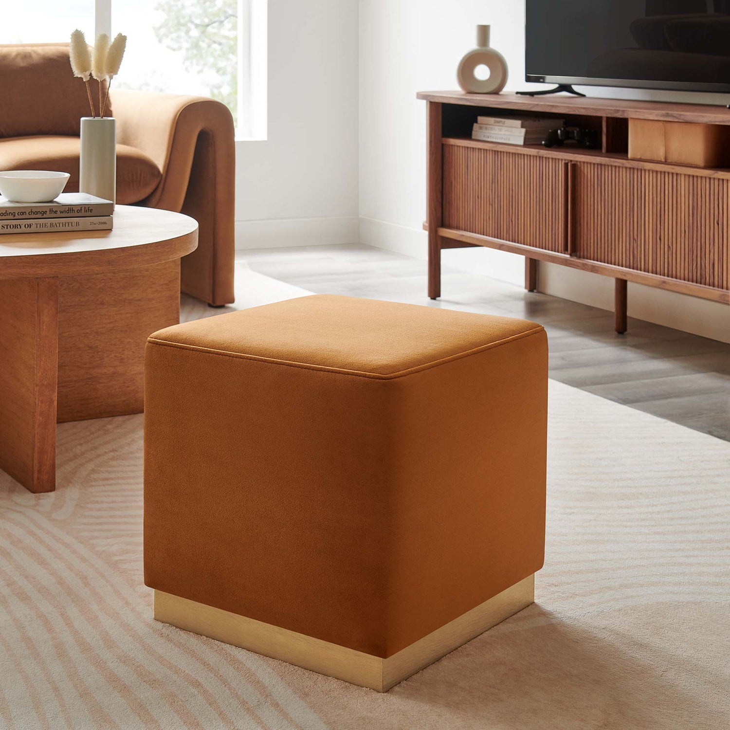 Tilden 17" Square Performance Velvet Upholstered Ottoman