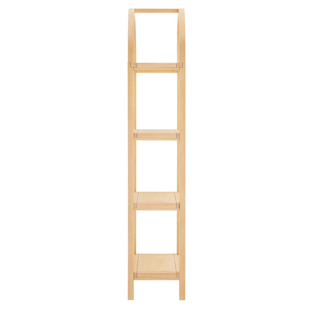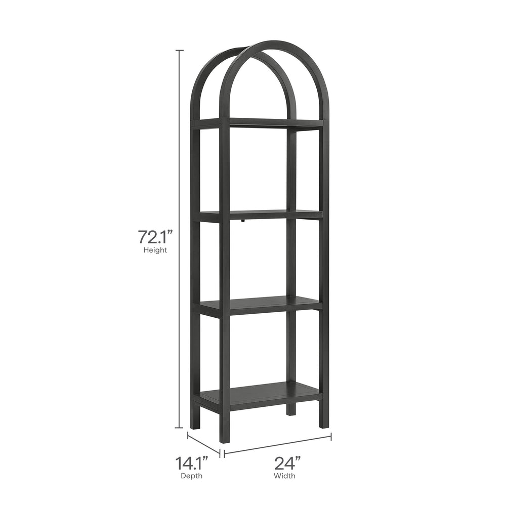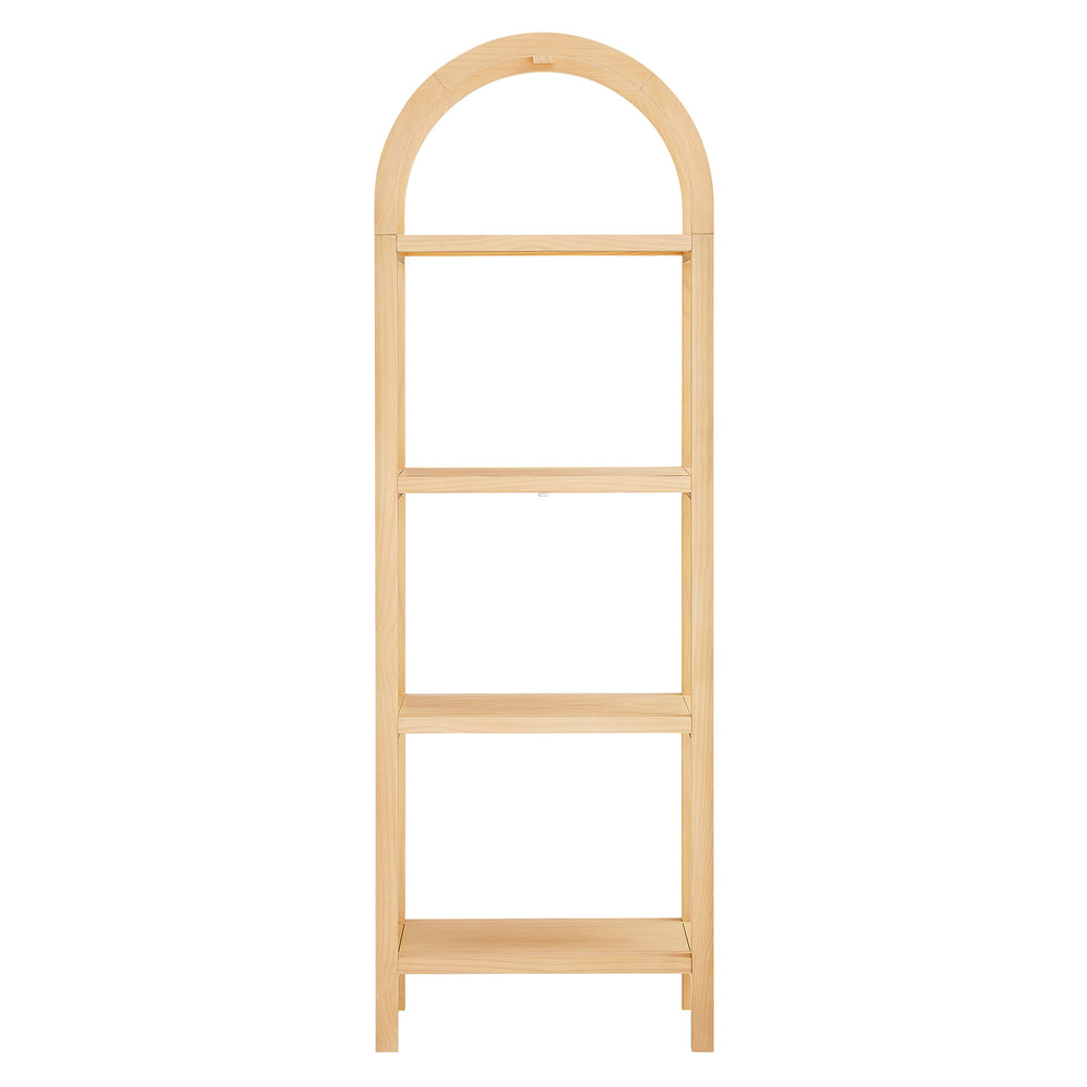 With its sculptural curves and modern take on classic arches, the Vexley Arched Bookshelf brings an artful edge to any space. Ideal for showcasing curated objects, favorite reads, or design-forward accents, this slim 72 inch open shelf bookcase plays with negative space and architectural curves, bringing an airy, artful touch to blank walls or creative corners. Built from a pine wood frame and shelves, Vexley offers both strength and style. For added safety, it includes an anti-tip bracket on one of the middle shelves and non-marking glides to protect flooring. A true conversation starter, this arch bookshelf adds vertical interest without visual clutter, blending modern form with effortless display potential. Assembly required. Weight Capacity: 220 lbs.