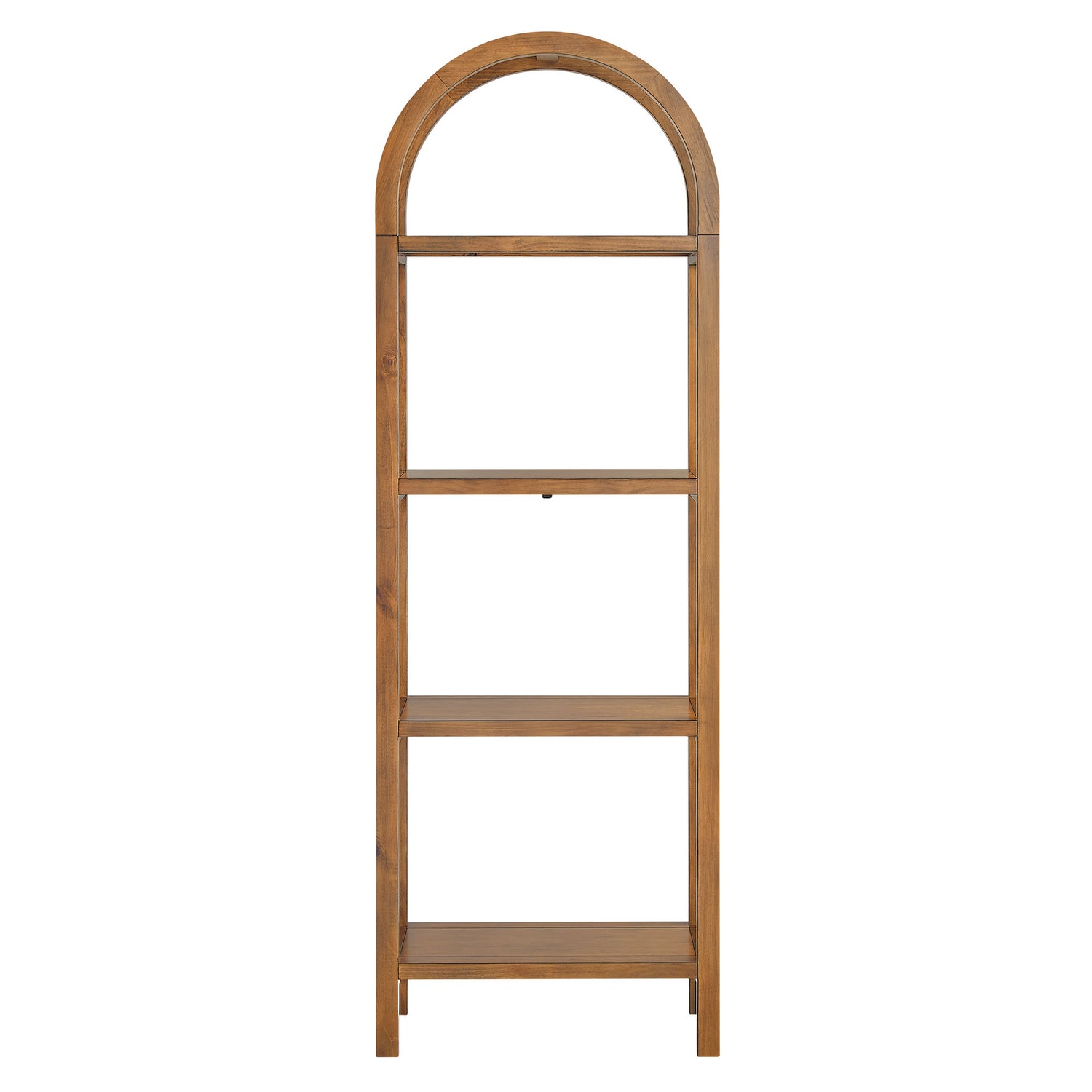 With its sculptural curves and modern take on classic arches, the Vexley Arched Bookshelf brings an artful edge to any space. Ideal for showcasing curated objects, favorite reads, or design-forward accents, this slim 72 inch open shelf bookcase plays with negative space and architectural curves, bringing an airy, artful touch to blank walls or creative corners. Built from a pine wood frame and shelves, Vexley offers both strength and style. For added safety, it includes an anti-tip bracket on one of the middle shelves and non-marking glides to protect flooring. A true conversation starter, this arch bookshelf adds vertical interest without visual clutter, blending modern form with effortless display potential. Assembly required. Weight Capacity: 220lbs.