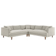 Dive deep into comfort and conversations with the Zoya Upholstered Down-Filled Sectional Sofa. The perfect addition to modern living rooms, family rooms, or game rooms, Zoya's two-piece sectional design, with a central corner piece anchored by loveseats on either side, offers a low, comfortable profile and spacious deep seating for an immersive lounging experience. Upholstered in polyester fabric with a down blend and dense foam filling, this living room sofa provides a soft, cloud-like sensation that retains its shape. Accompanied by back cushions and two square throw pillows, this sectional delivers a lounging experience optimized for comfort. The convenience of removable and washable cushions makes maintenance a breeze. Underneath a lavish exterior, Zoya integrates pocket springs, which offer added support, all while perched on sleek tapered rubberwood legs and set on a solid wood frame. Whether you're hosting a movie night or reading your favorite book, the Zoya Fabric Sofa is your ticket to a luxurious lounge. Comes equipped with non-marking foot caps. Assembly required. Each piece weight capacity: 600 lbs.