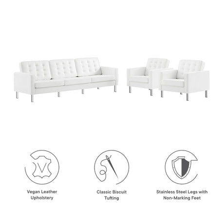Loft 3-Piece Tufted Vegan Leather Furniture Set by Modway