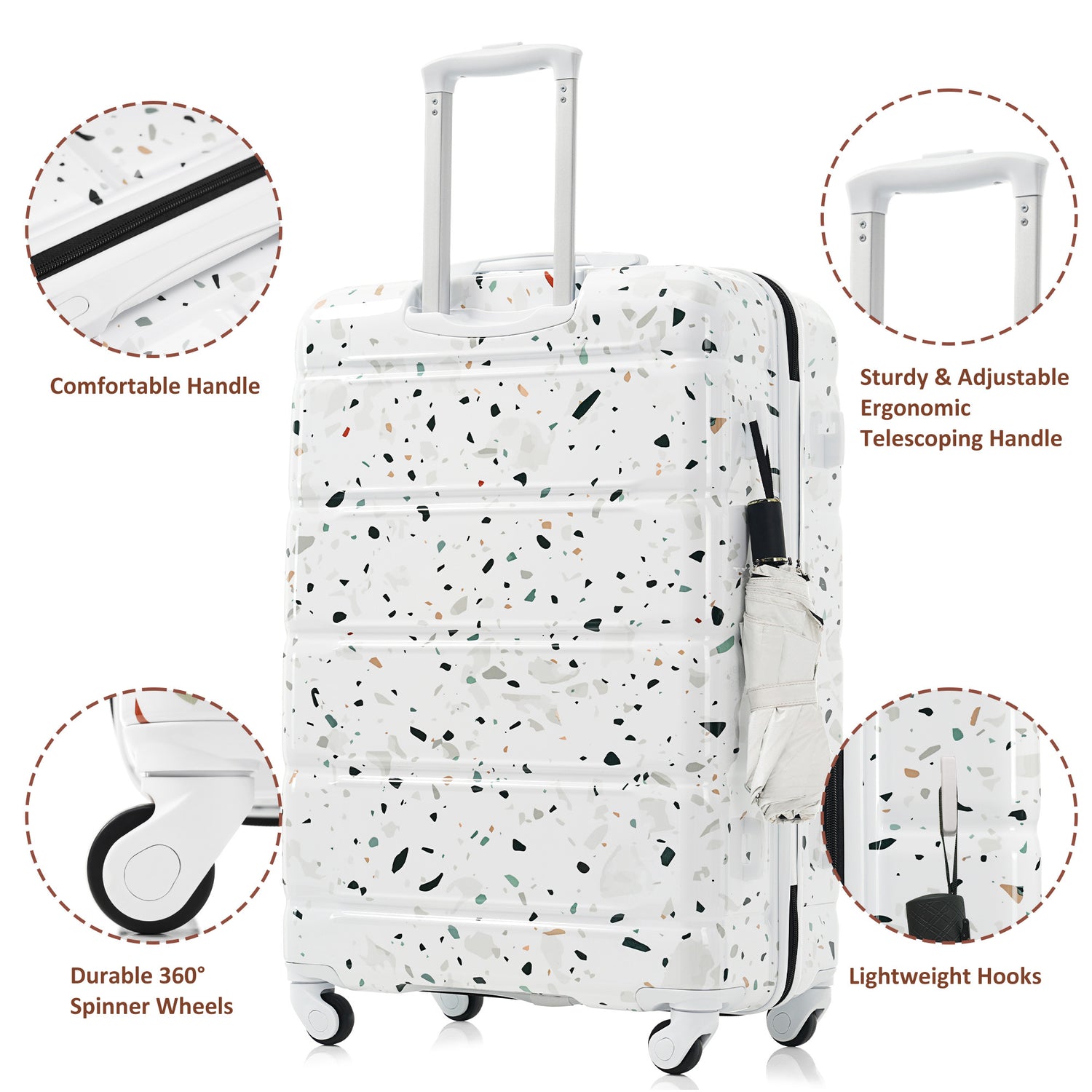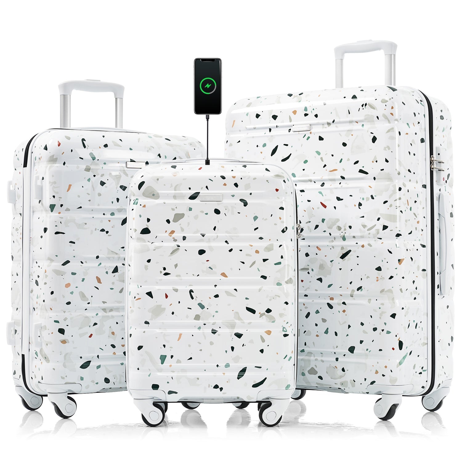 Luggage Set of 3, 20-inch with USB Port, Airline Certified Carry-on Luggage , ABS+PC Hard Shell Luggage with Spinner Wheels,starry sky white