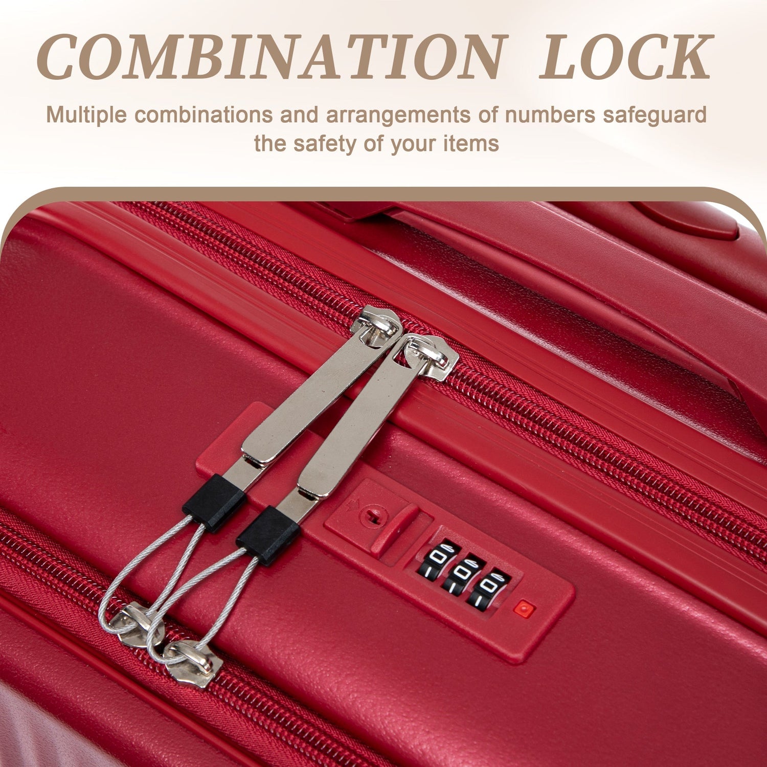 • Combination lock adds security for belongings.