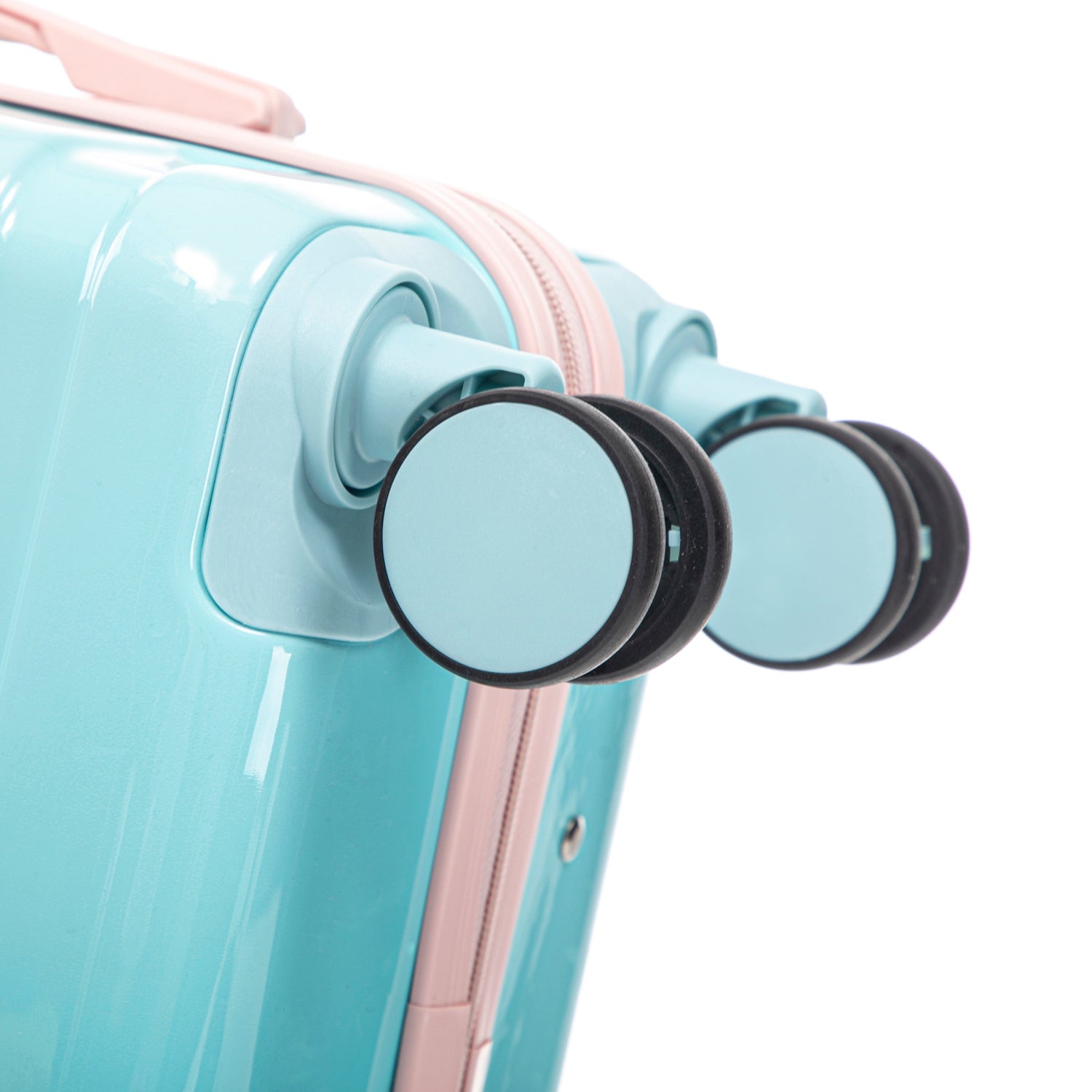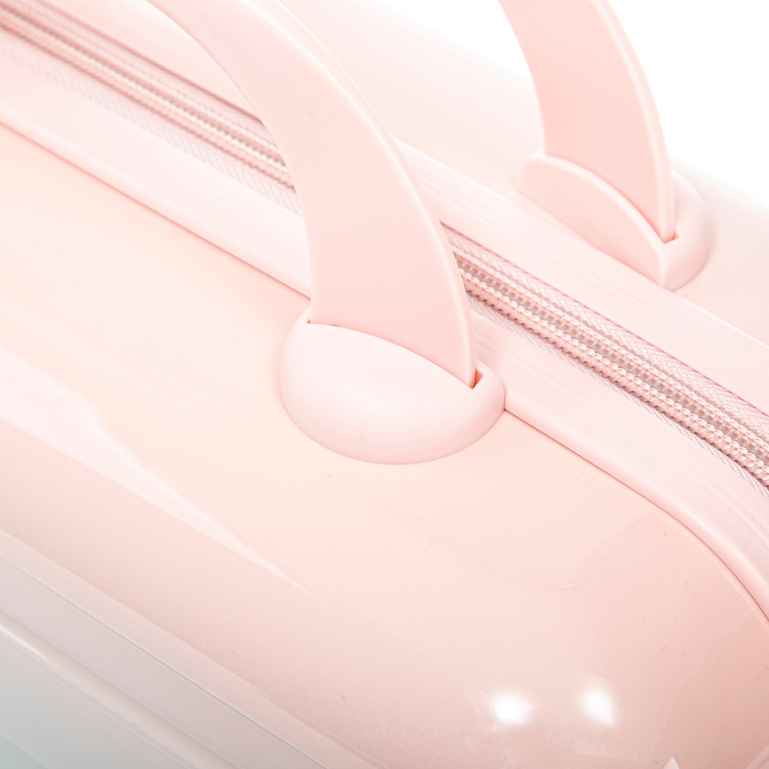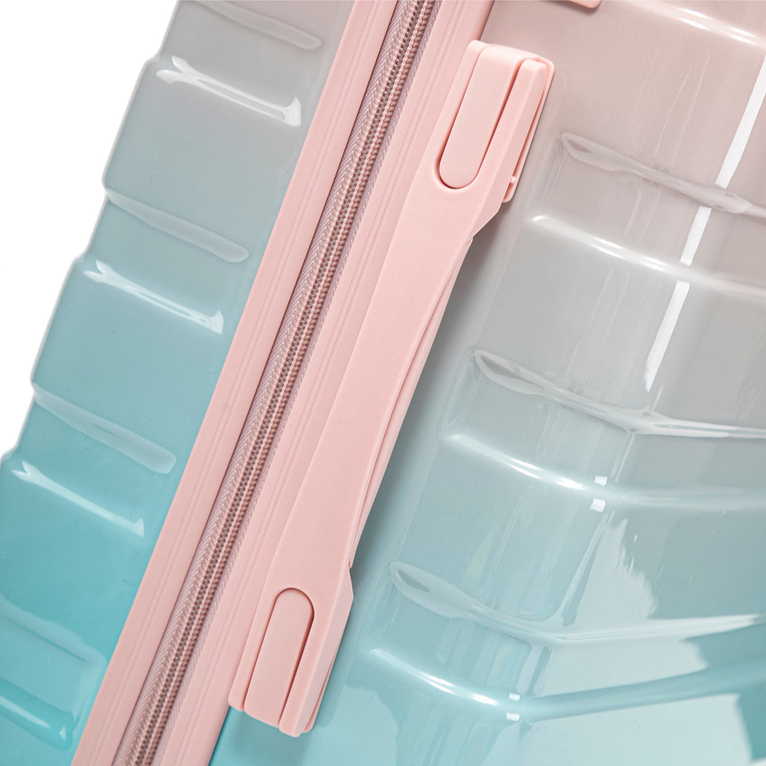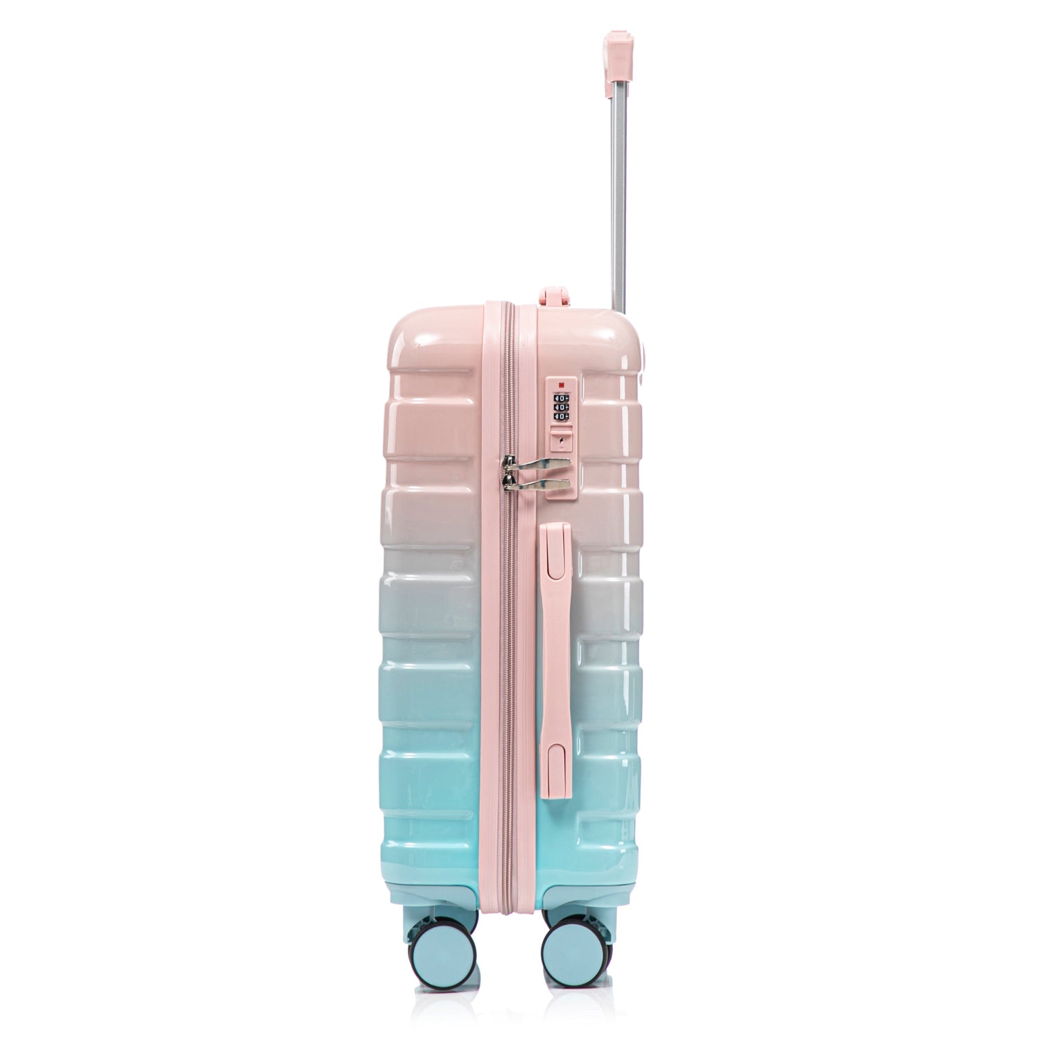 This 2-piece luggage set includes a 20" main suitcase and a 14" cosmetic case, designed for convenient carry-on travel. Featuring a modern gradient blue and pink design, it's ideal for weekend getaways and short trips.