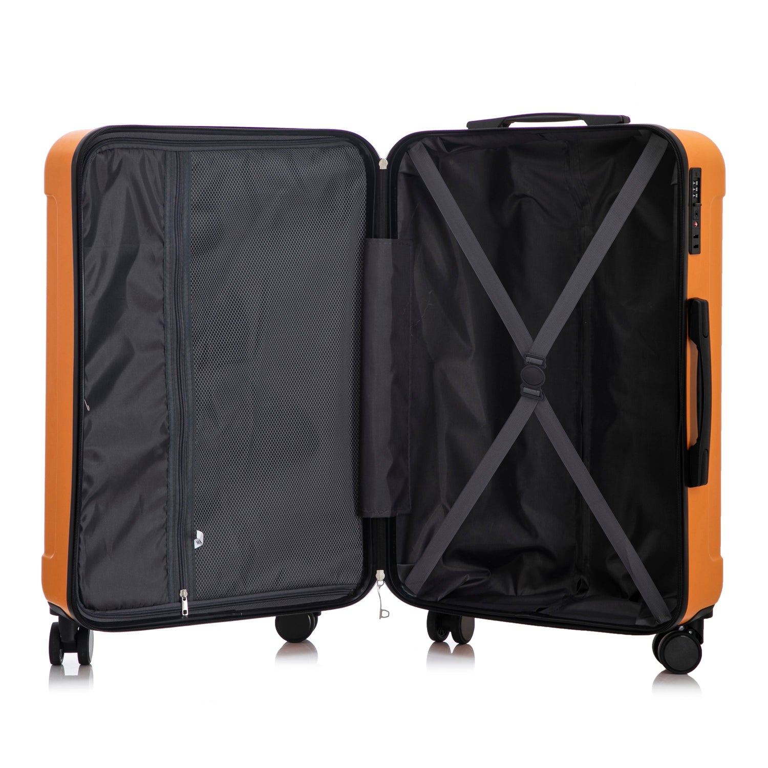 3-Piece ABS Spinner Wheel Luggage Set in Black and Orange