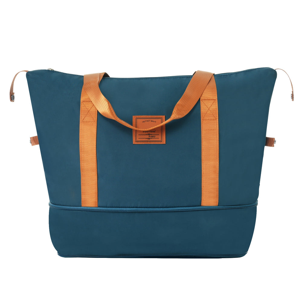 - Travel duffel bag equipped with trolley sleeve and zippered pocket for convenience