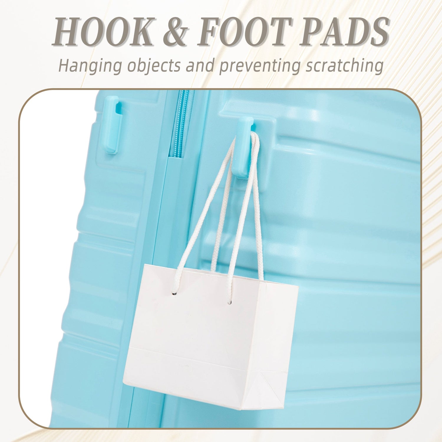 • Four molded side feet allow luggage to remain upright when placed on its side