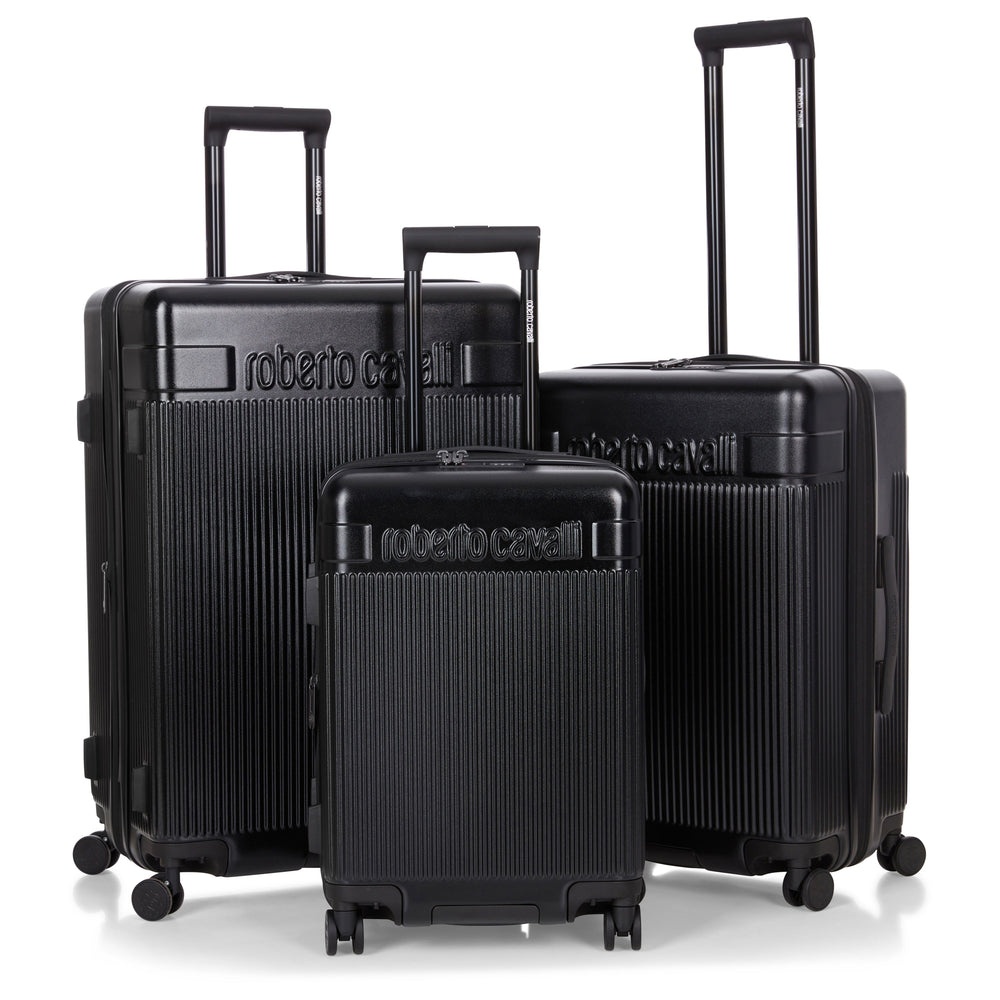 This Roberto Cavalli 3 Piece Luggage Set is designed for organized and stylish travel, suitable for frequent flyers and vacationers. It includes hard shell suitcases ideal for overhead compartments and checked luggage.