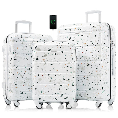 Luggage Set of 3 with USB Port and Spinner Wheels