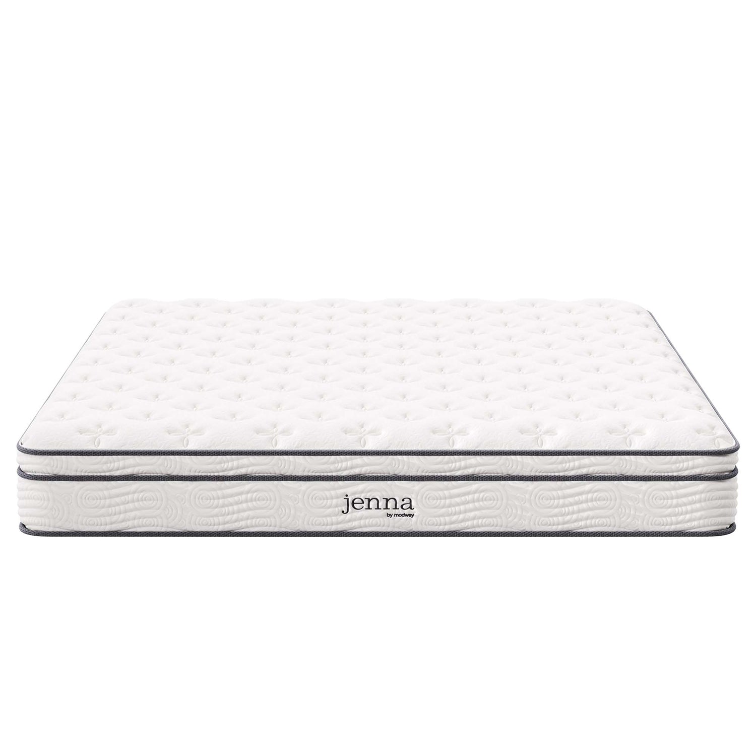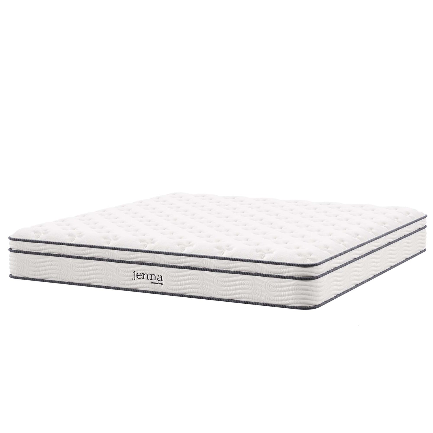 Enjoy rejuvenating sleep with the Jenna 10" Innerspring Mattress. Jenna features individually wrapped pocket coils that isolate motion between sleeping partners and provide pressure relief and spinal alignment. Responsive to the needs of the side, back, and stomach sleeping styles, Jenna�s 8.5" tall coils come padded underneath a layer of responsive foam and breathable foam for maximum comfort. Complete with a quilted pillow-top cover, this hybrid mattress relieves pressure on hips, back, and shoulders, while delivering cooling airflow night after night. Jenna is a firm innerspring mattress that avoids the sag and sink of foam and air mattresses, and ships compressed and rolled into a box for easy delivery.