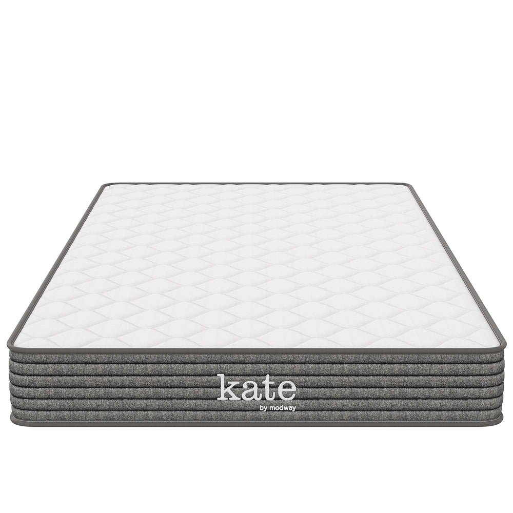 Get a good night's sleep with the Kate 6" Twin Mattress, designed with comfort in mind. Featuring an integrated Bonnell spring system that combines the classic buoyancy of steel springs with a luxurious 0.4" cushioning foam layer, this mattress is supportive and plush. Enhancing comfort, Kate boasts two felt liners, one placed above the springs and one below, to evenly distribute weight and relieve pressure on hips, back, and shoulders. Complete with a gray fabric fire-resistant barrier that has been tested to ensure it meets safety standards, the Kate Twin Mattress is perfect for a child's bedroom, guest room, college dorm, or studio apartment. Shipped conveniently compressed and rolled within a portable box for straightforward delivery and setup, it typically takes 2 to 3 hours for the mattress to fully expand. This mattress comes backed by a 10-year warranty. Box spring or foundation is optional.