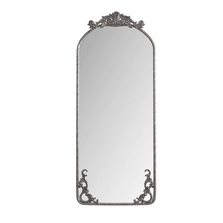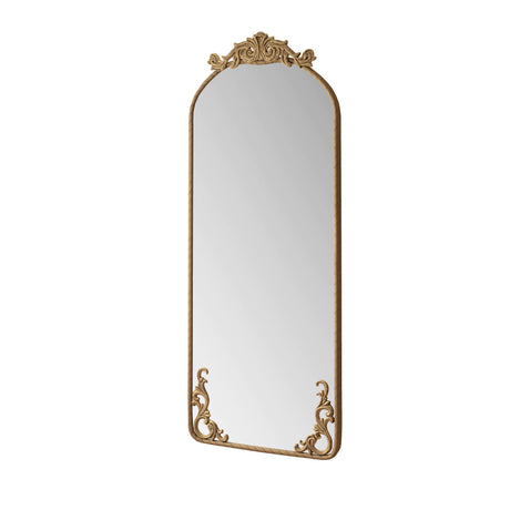 Retro Arched Full Body Mirror with Vintage Carved Applique