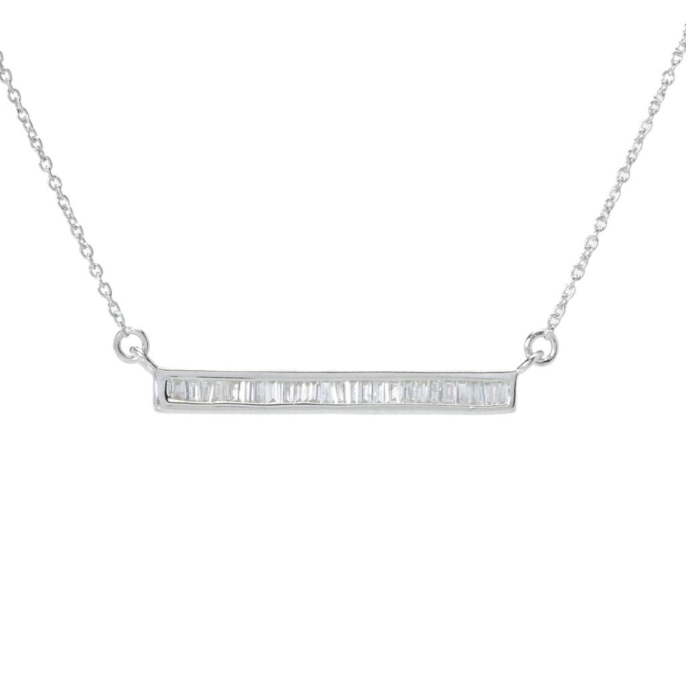 Diamond Treasures Sterling Silver 0.32ctw Baguette Diamond Bar Necklace