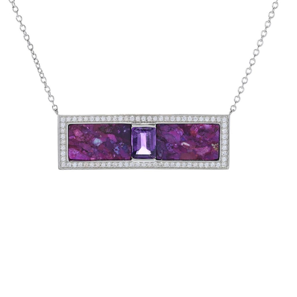 Elemental Gems Platinum Plated Choice of 15x8.5mm Turquoise Inlay & Gem Bar Necklace