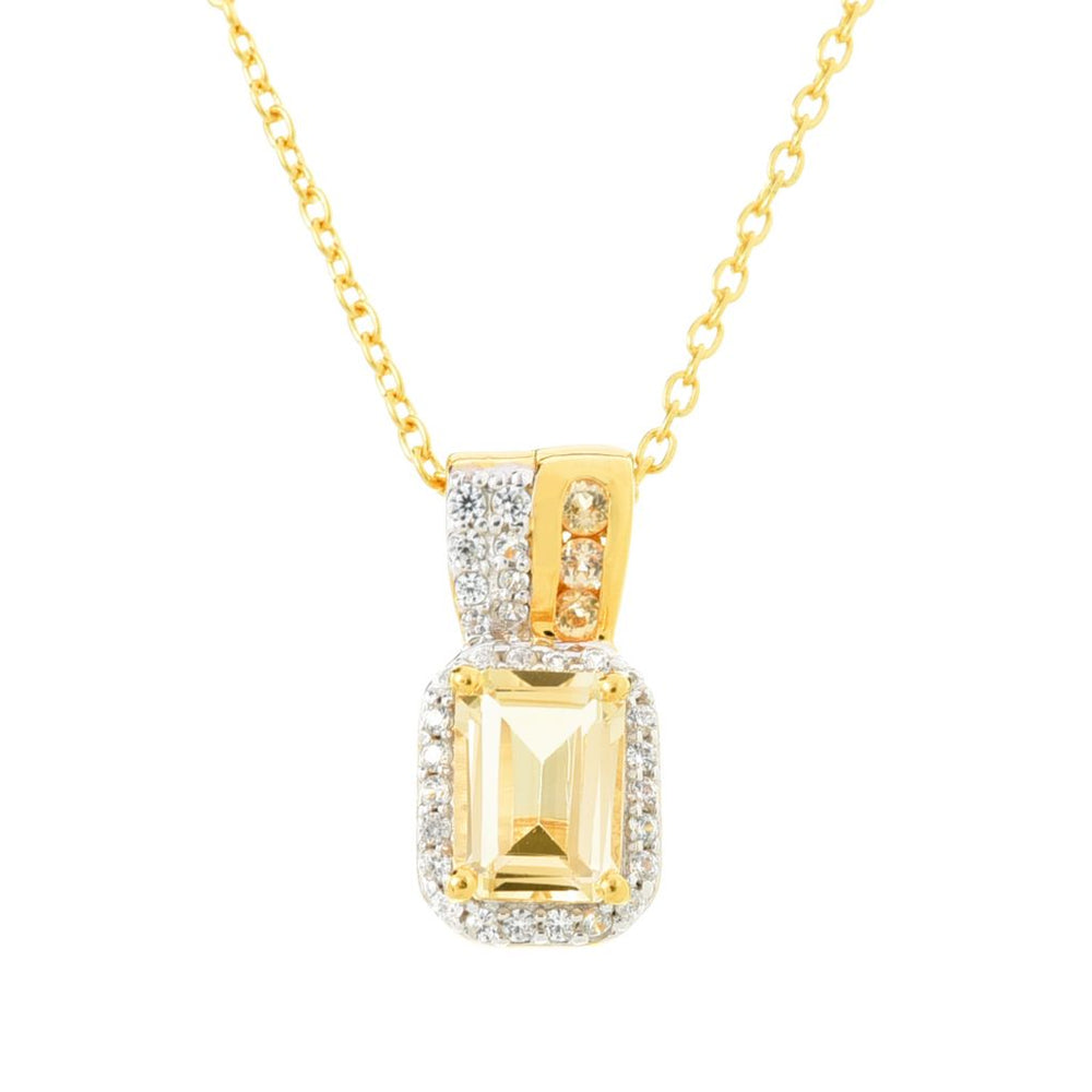 Gem Treasures 1.14ctw Octagonal Imperial Topaz & White Zircon Pendant w/ Chain