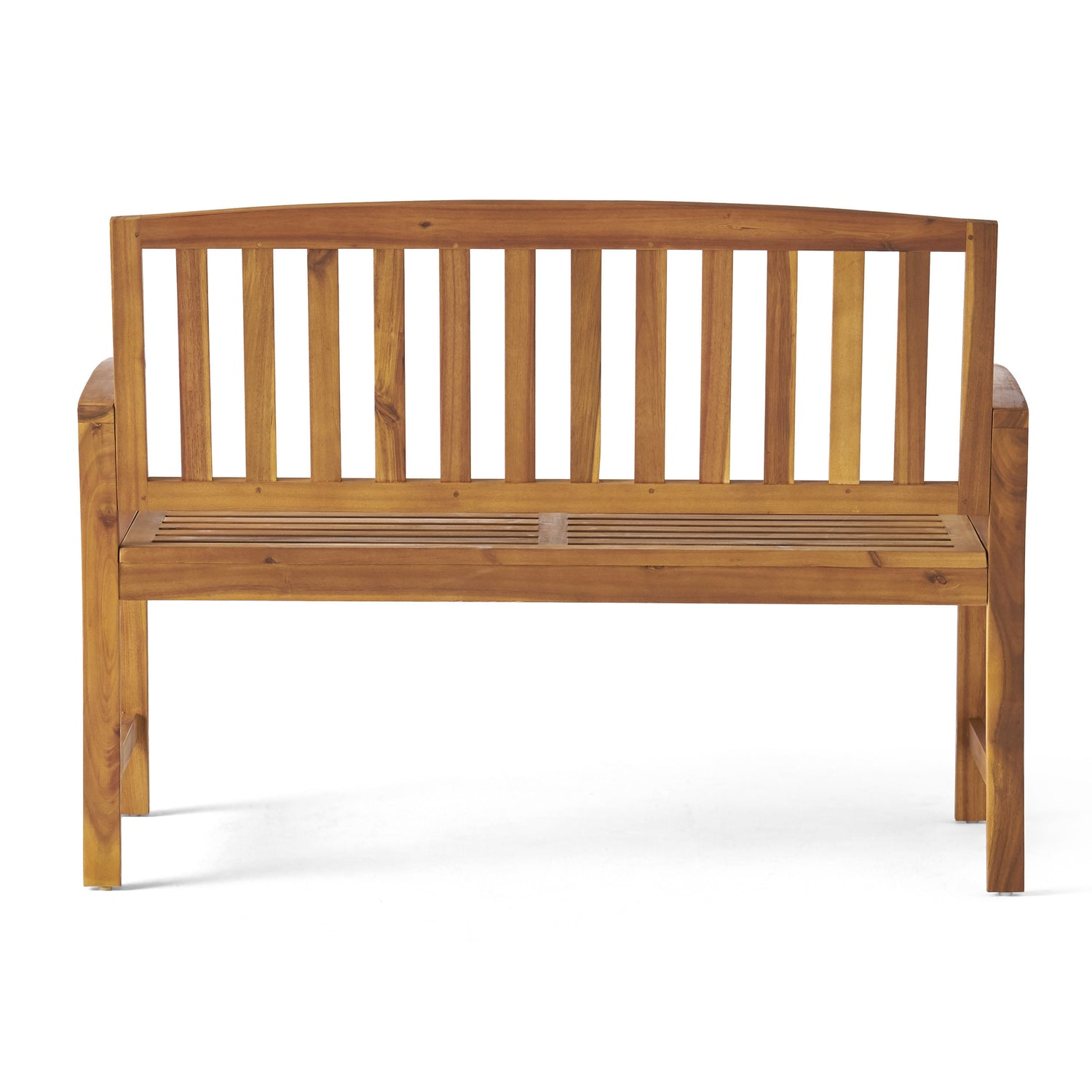 Introducing our farmhouse wood bench – the perfect addition to your outdoor space. Made from durable acacia wood, this bench is built to withstand the elements and provide you with years of enjoyment. Its warm teak finish adds a touch of rustic charm to any patio or backyard.