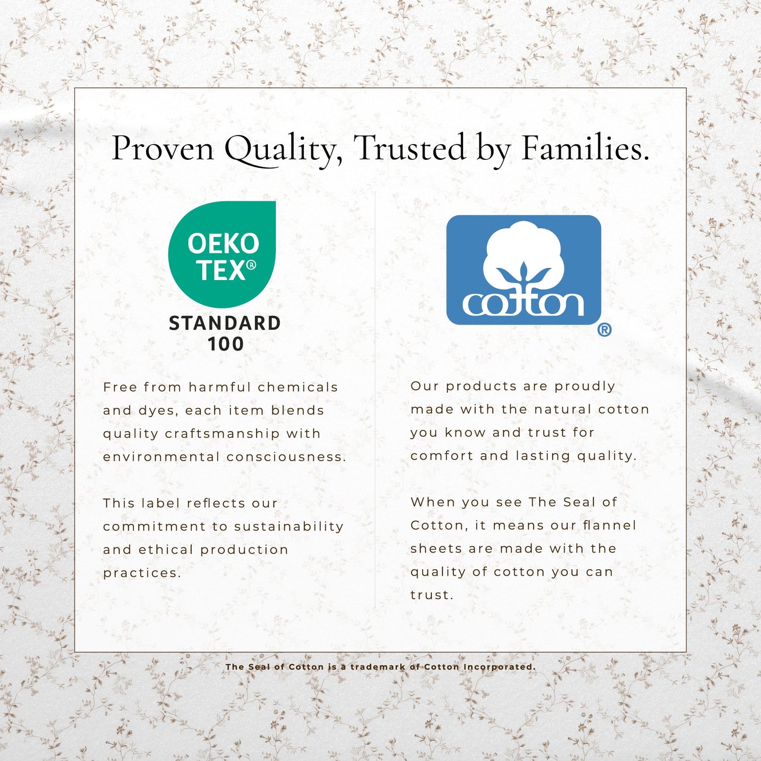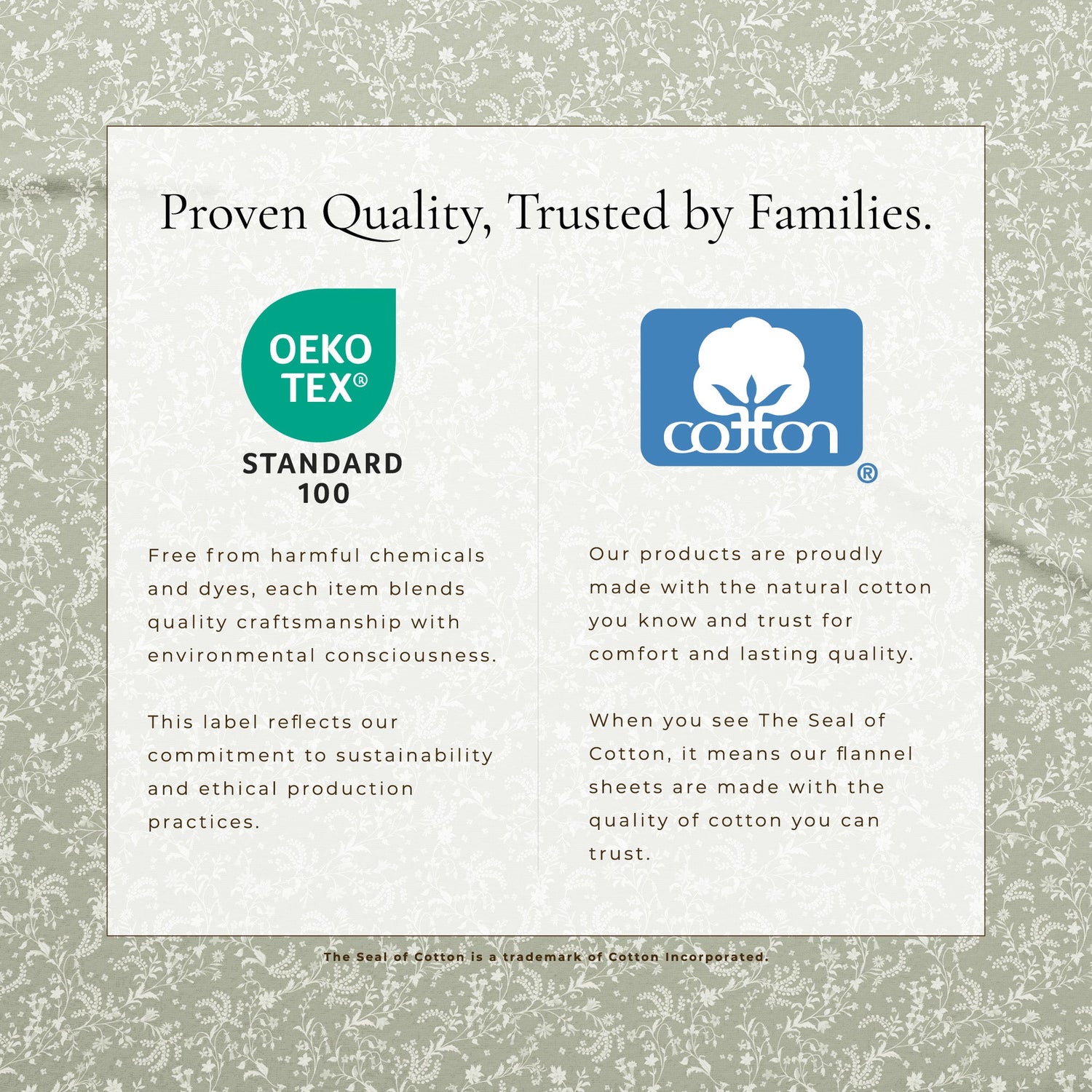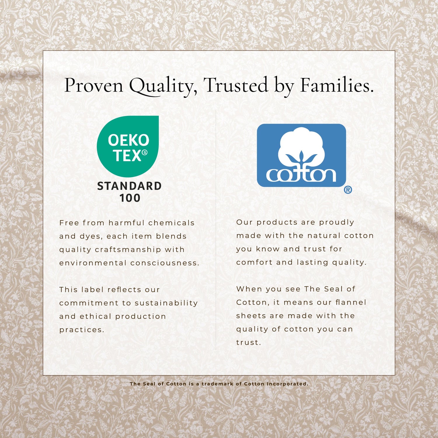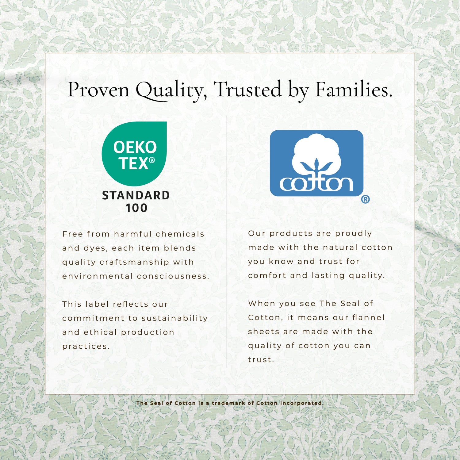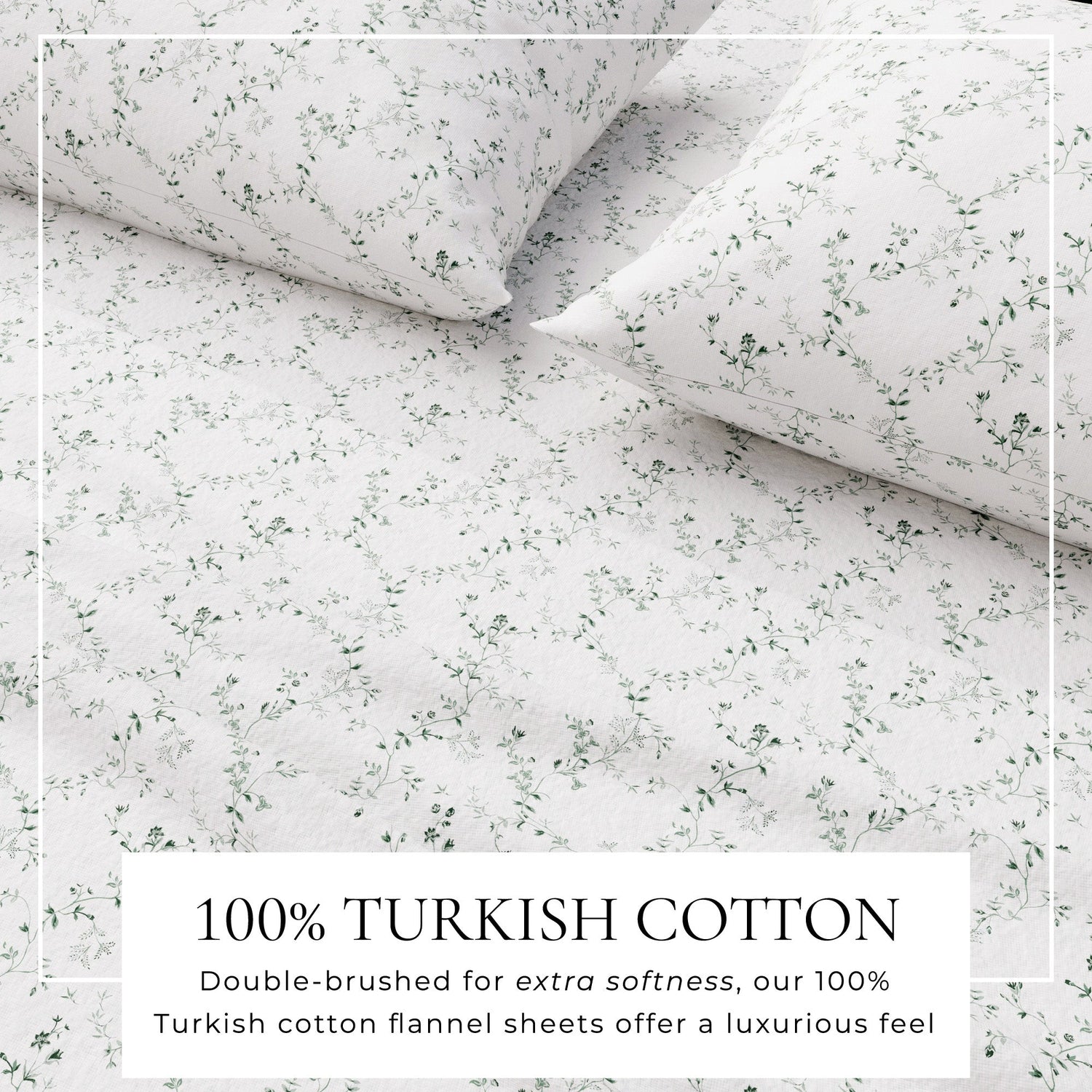 Fall to sleep in ultra-soft, breathable, and quality Turkish cotton flannel sheets. This collection features floral prints that will add a subtle update to your bedroom decor year-round. These 100% cotton sheets are double-brushed for softness and durability to ensure you have a set that offers comfort every night. Flannel sheets offer warmth for even the coldest of nights, so add these luxurious cotton flannel sheets to your bed and experience true comfort. Products that look good, feel good, and are made well, so you can trust you're getting high-quality products. These cotton flannel sheets are Standard 100 Certified by OEKO-TEX®.