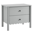 An elegant blend of subtle curves and practical storage, the Emmeline 2-Drawer Nightstand brings a touch of artistic flair to your bedroom or living space. Its standout feature, a scalloped edge design, creates a soft, flowing silhouette that enhances the modern simplicity of the design. With two full-glide drawers, this bedside nightstand offers flexible storage space, ideal for organizing bedside essentials, books, or accessories. Crafted with a sturdy frame and finished in smooth laminate, this versatile nightstand also doubles as a stylish side table for your living room. The round drawer knobs and non-marking glides add to its refined appearance, while ensuring your floors remain protected. Whether serving as a bedside table or accent side table with storage, the Emmeline 2-Drawer Nightstand brings a contemporary, polished look to any space. Assembly required.